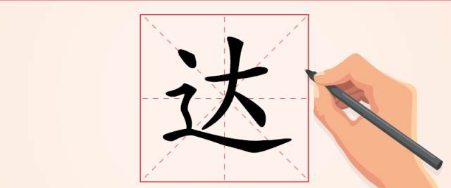 表示人在大道上行走。《广雅》中说:“达,通也”,《说文解字》中说:“达,行不相遇也”,白居易有诗:“高高此山顶,四望唯烟云。下有一条路,通达楚与秦”,人来人往、各行其道、畅通无阻,这就是达字的本义。古代道路制中,“一达谓之道路,二达谓之歧旁,三达谓之剧旁,四达谓之衢,五达谓之康,六达谓之庄……”道路通达五个方向叫作“康”,通达六个方向叫作“庄”,合起来就是我们常说的“康庄大道”。
