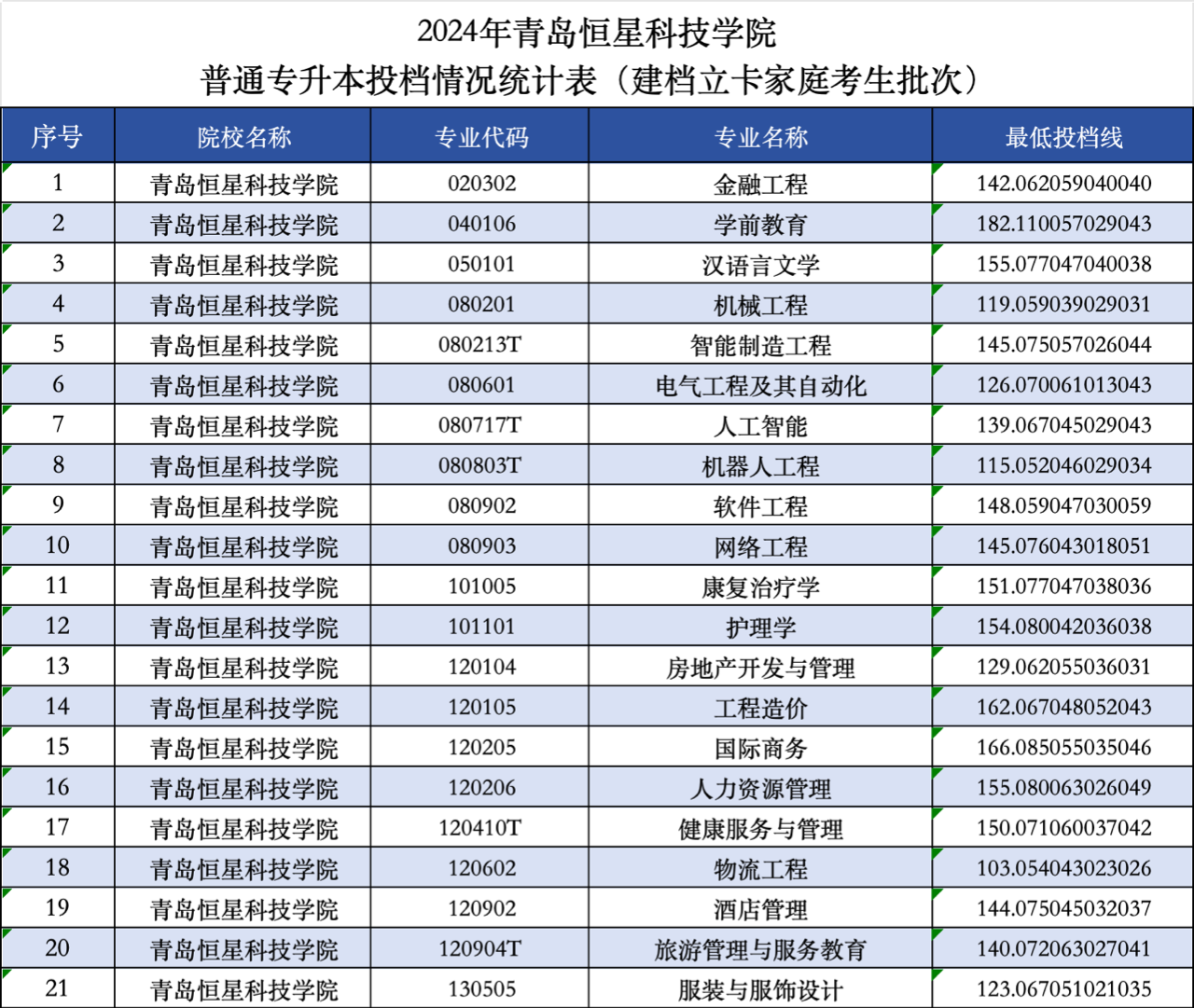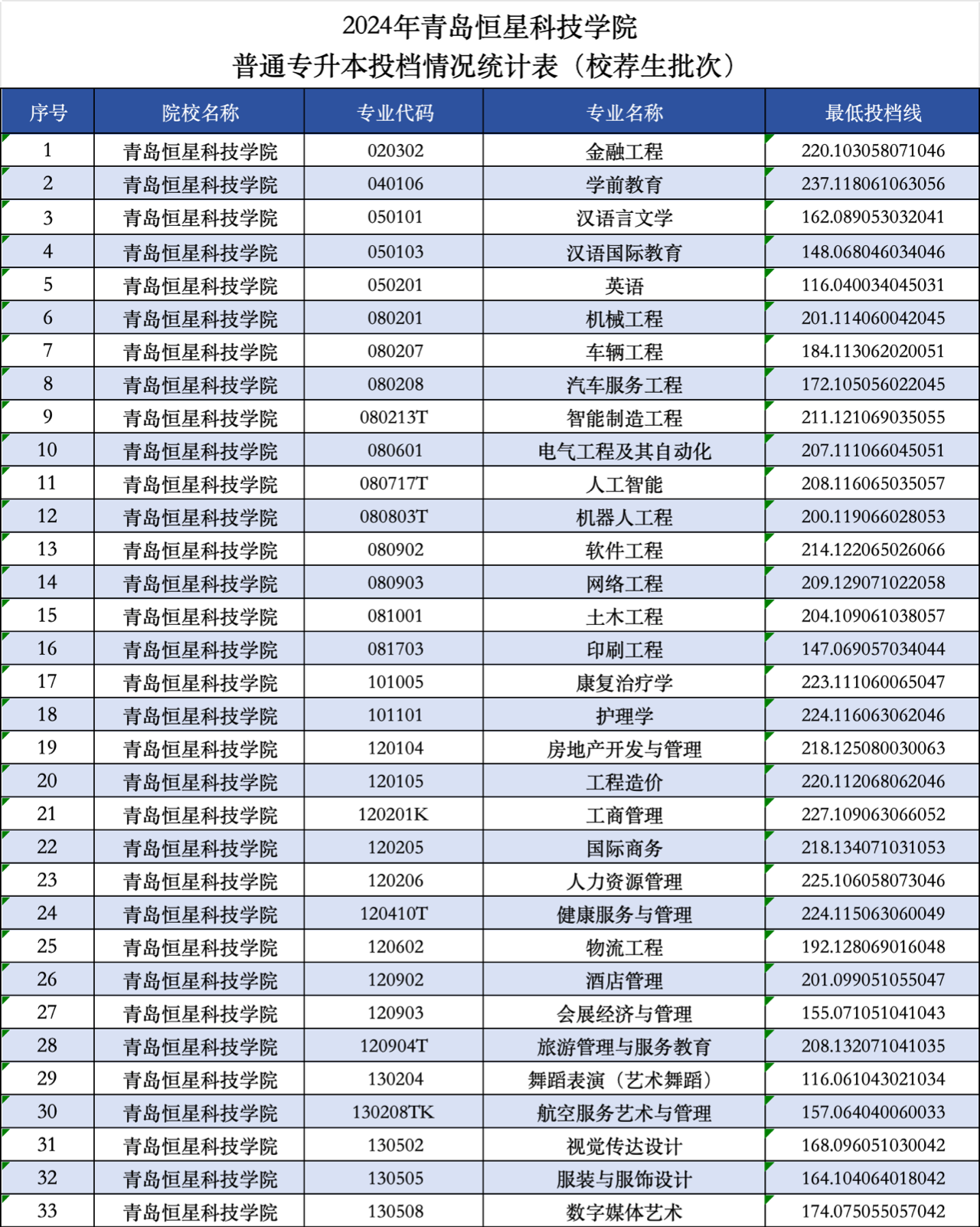 2024青岛恒星科技学院专升本投档情况
