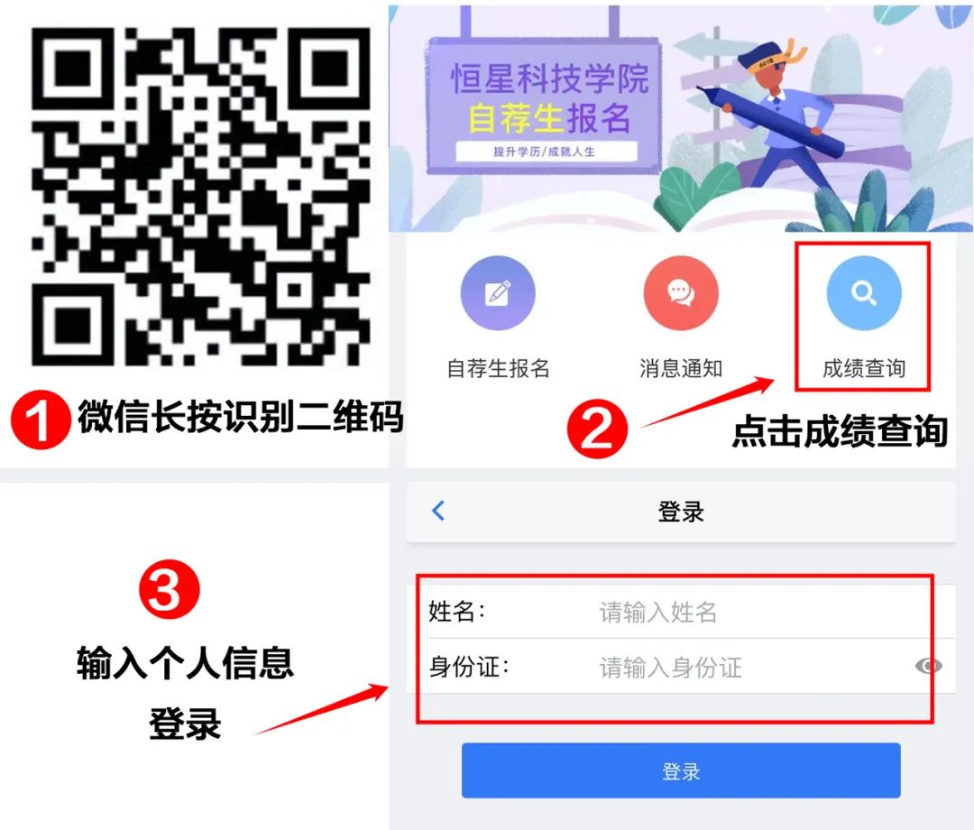 微信长按识别二维码--点击成绩查询--输入个人信息--登录