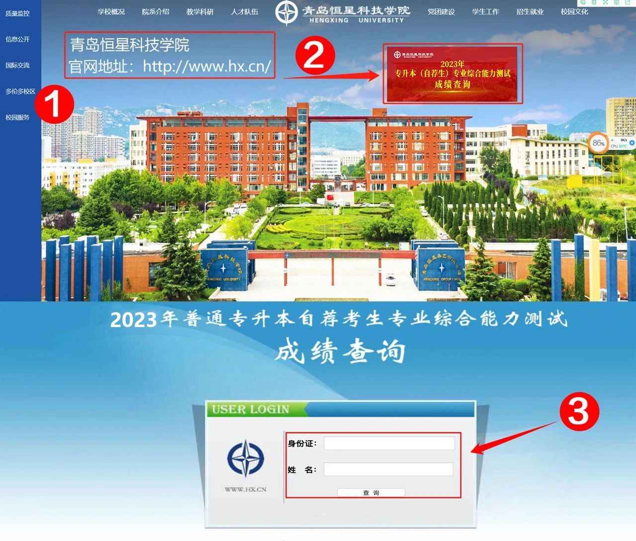 登录青岛恒星科技学院官网(http://www.hx.cn/)--点击专升本成绩查询--输入个人信息--查询