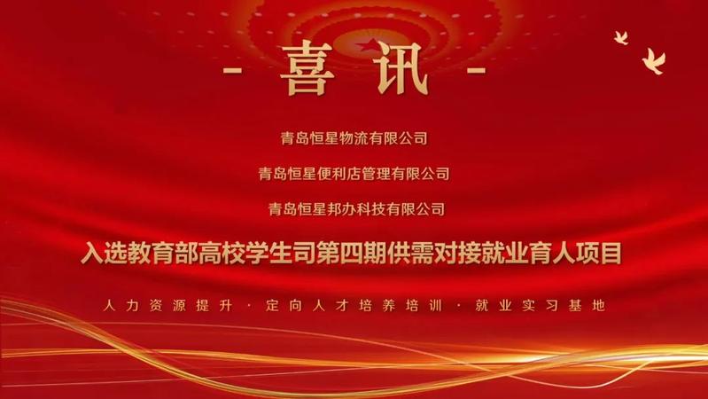 近日,青岛恒星科技学院商学院传来捷报,经过严格评审与层层筛选,商学院实践教学基地:青岛恒星物流有限公司、青岛恒星便利店管理有限公司及青岛恒星邦办科技有限公司,凭借其在深化产教融合、提升教育质量、促进学生综合素质全面发展,以及积极引领教学改革与校企合作创新方面的杰出贡献,荣获教育部批准,正式入选教育部高校学生司第四期供需对接就业育人项目。