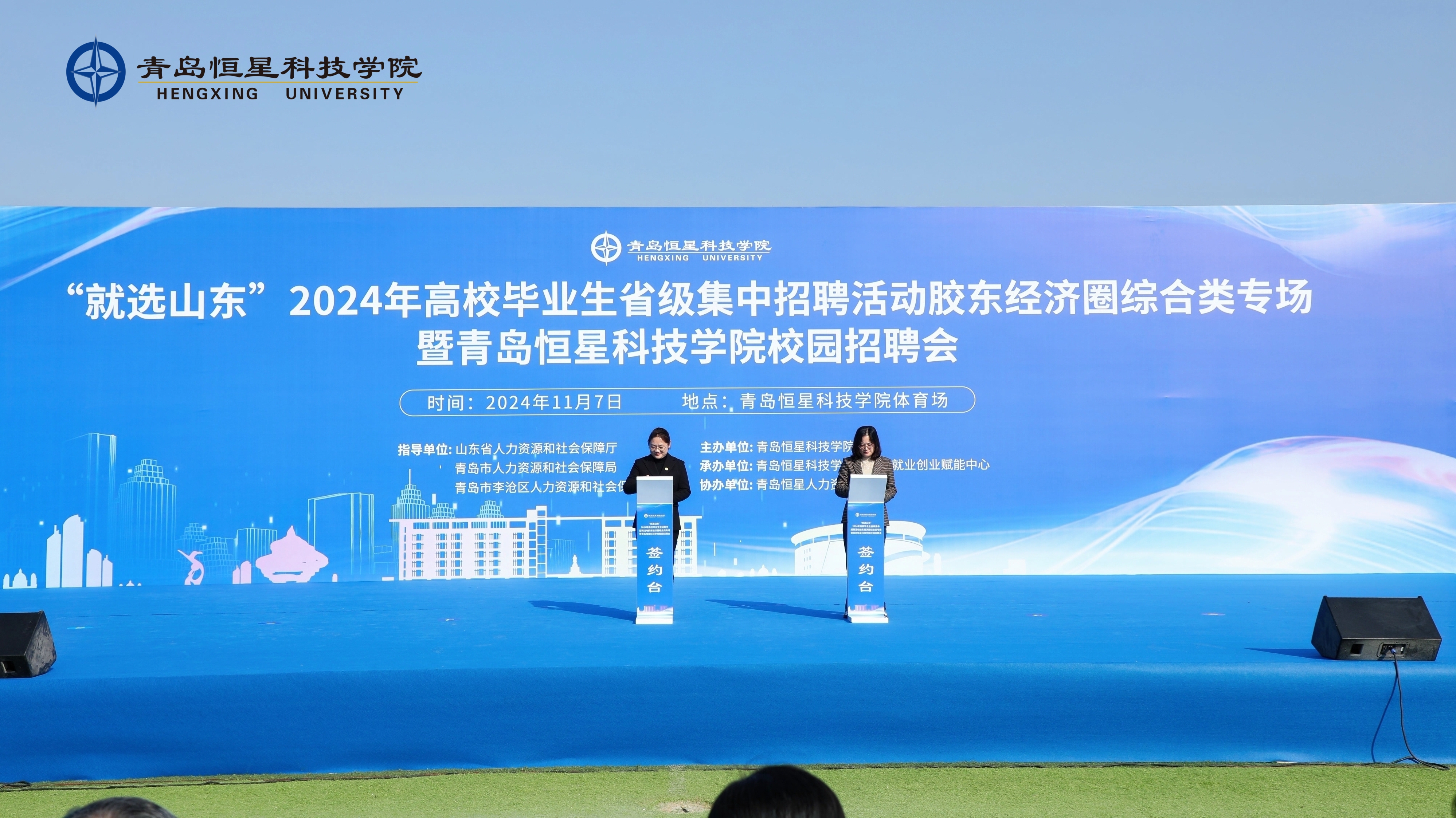 招聘会上,青岛恒星科技学院与青岛市李沧区工商业联合会、射阳人力资源和社会保障局签署校地共建协议,与18家用人单位签署校企共建协议,聘任山东博峻智能科技有限公司董事长滕克桓为学校汽车行业学院行董会董事,政、校、行、企多方协同,共建共管共享,聚力协同创新,进一步构建全方位、全链条、深融合的产学研用协同育人新机制。