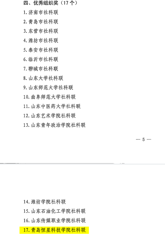为配合做好山东省“2024春节山东乡村文化旅游节”,青岛恒星科技学院社科联组织开展了”乡村年味浓“作品征集活动。期间,全省共报送山东省社会科学界联合会120余项征集作品。经过评审,青岛恒星科技学院社科联获得“优秀组织奖”。