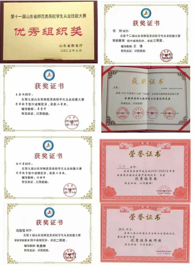 充分发挥党员教师先锋模范作用,积极开展大学生职业生源规划和就业引导的实践探索。党支部教师担任学社导师从学业指导、技能提升、大赛科研、职业规划全方位开展项目化人才培养。近两年毕业生就业率达90%以上,专业对口率达67%,共有38位毕业生考取硕士研究生。近三年共获得各类大赛奖励百余项,支部教师指导山东省师范类专业从业技能大赛获奖8项,指导学生发表论文23篇,专利软著14项。