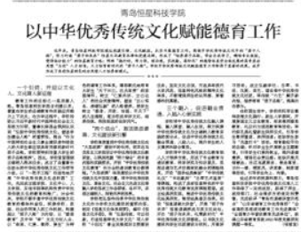 经过多年的探索和努力,青岛恒星科技学院中华优秀传统文化育人工作取得了一定的成效,获得了师生、政府部门、社会等多方的肯定和赞誉,先后获评“青岛市道德讲堂示范点”“山东省德育工作优秀高校”“全省高校思想政治教育工作先进集体”“全国青少年普法教育先进单位”,获得山东省教育系统2022年度党建研究课题一等奖。(恒星宣)