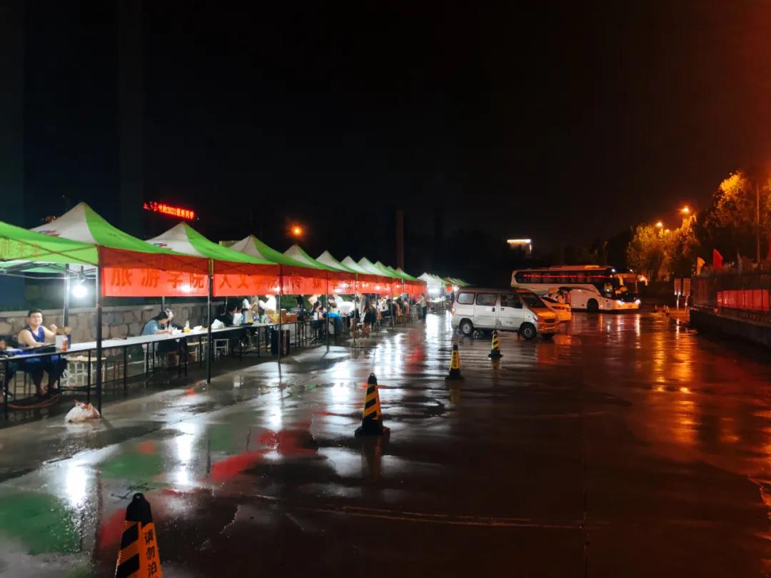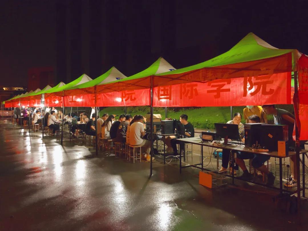 迎新的前一天,在夜色的点点星光和红色条幅下,恒星“老一辈”在淅淅沥沥的小雨中守望着“新一辈”的到来。