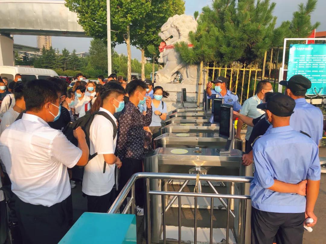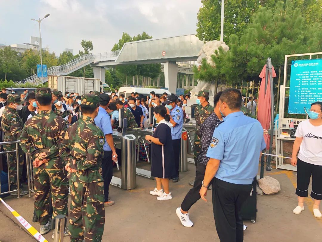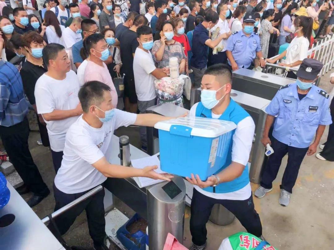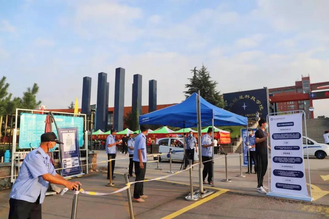 六点之前,学校负责接待的老师和志愿者们就到达接待现场,2021级新生和家长们也早早的在学校南门整齐排队等待入校。