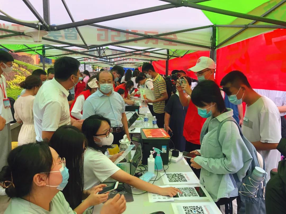 青岛恒星科技学院董事长陈昌金、校长毕宪顺等校领导来到迎新现场,与2021级报到的新生及家长们亲切交流,向他们表示热烈欢迎,并慰问了现场的工作人员和志愿者们。