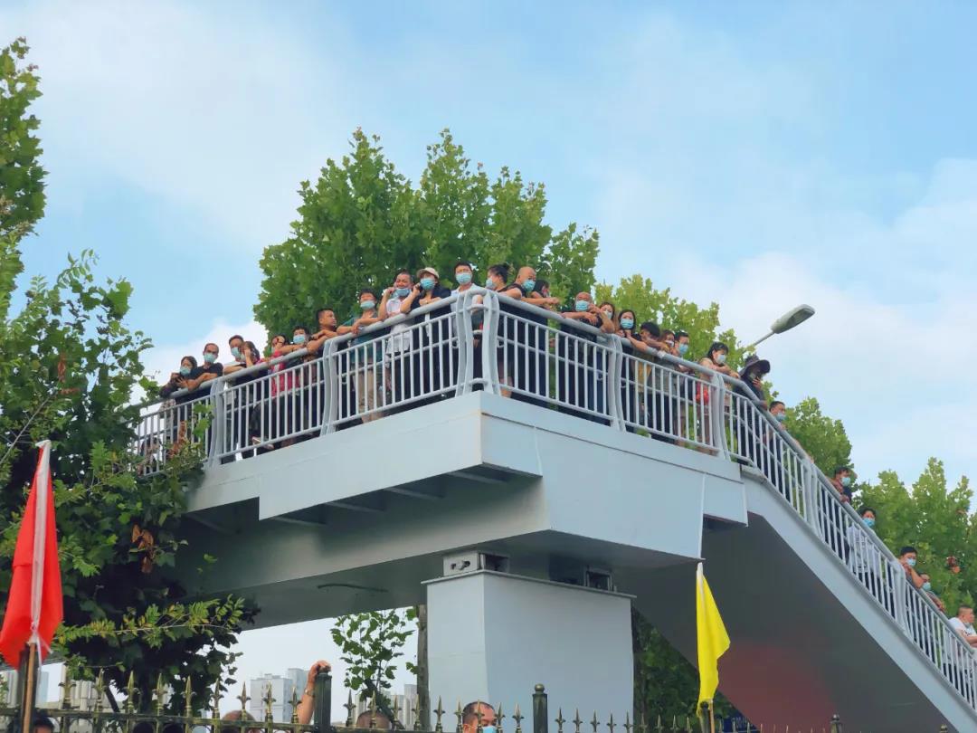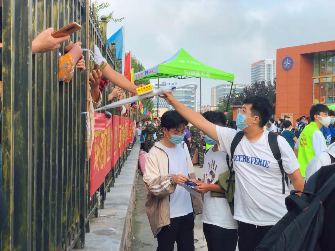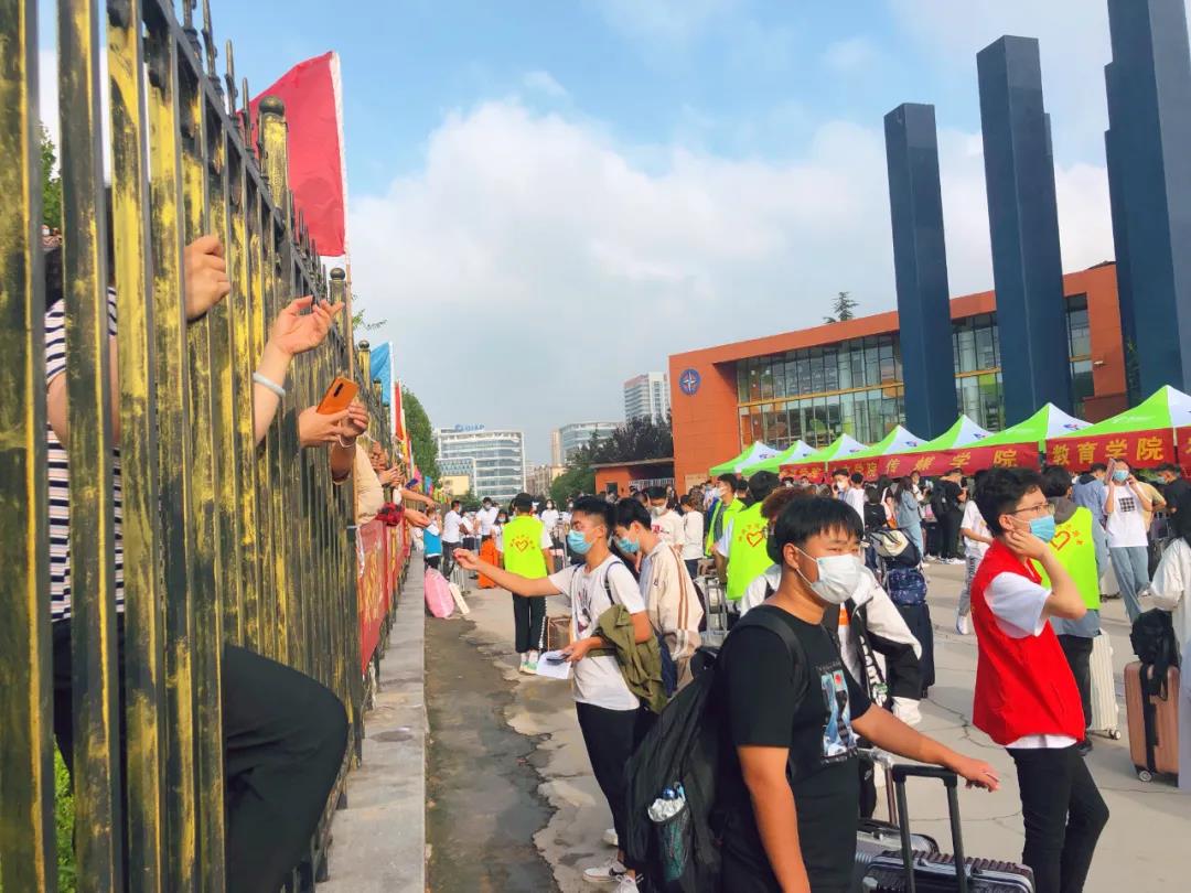 校园内,新生给校园注入活力,一派热闹景象;校园外,配合疫情防护工作的父母们止步校门,带着牵挂和祝福驻足天桥,望眼欲穿。