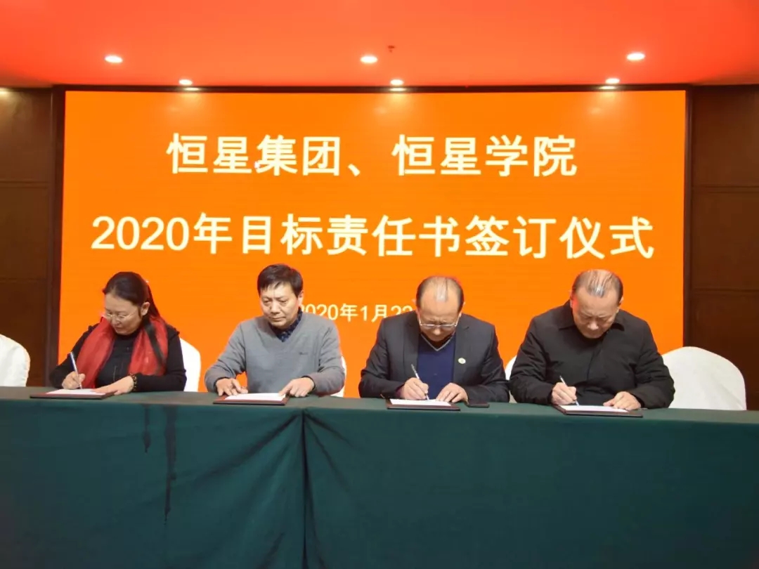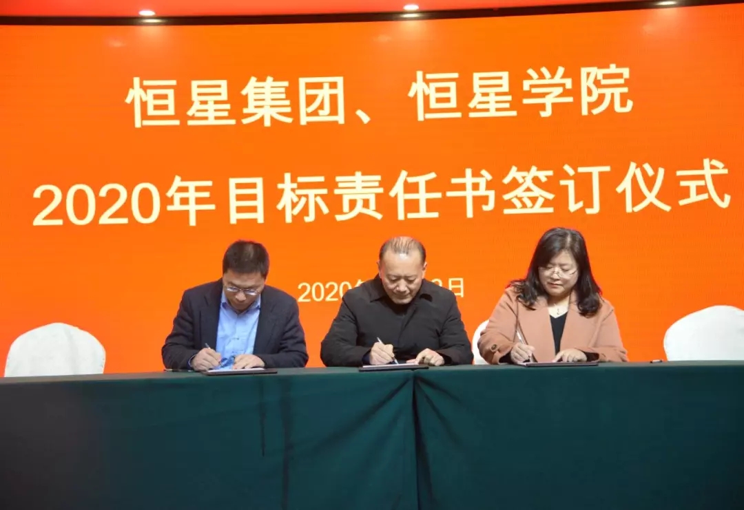 董事长与学校执行团队,徐爱民校长与教学科研系统、各教学单位,陈杰校长与学工系统,陈昌军校长与运营系统、各行业集团分别签订了2020年《目标责任书》。
