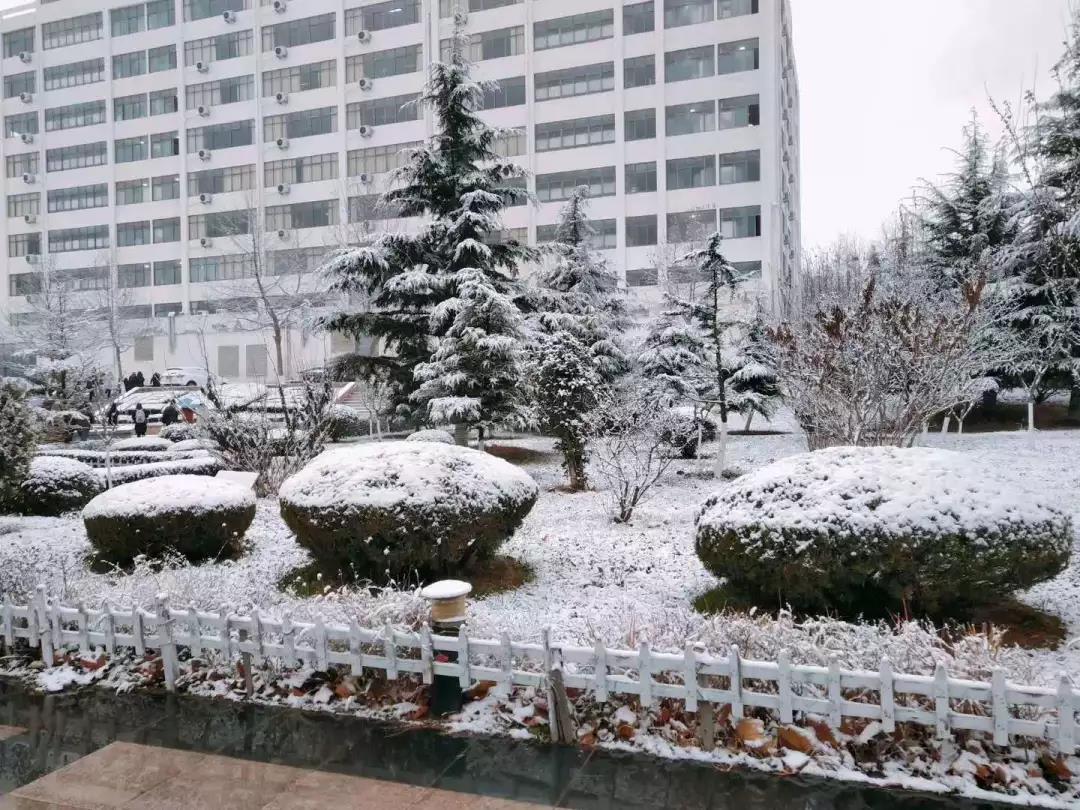(冬天的校园如诗如画,缀满了怒放的白花)