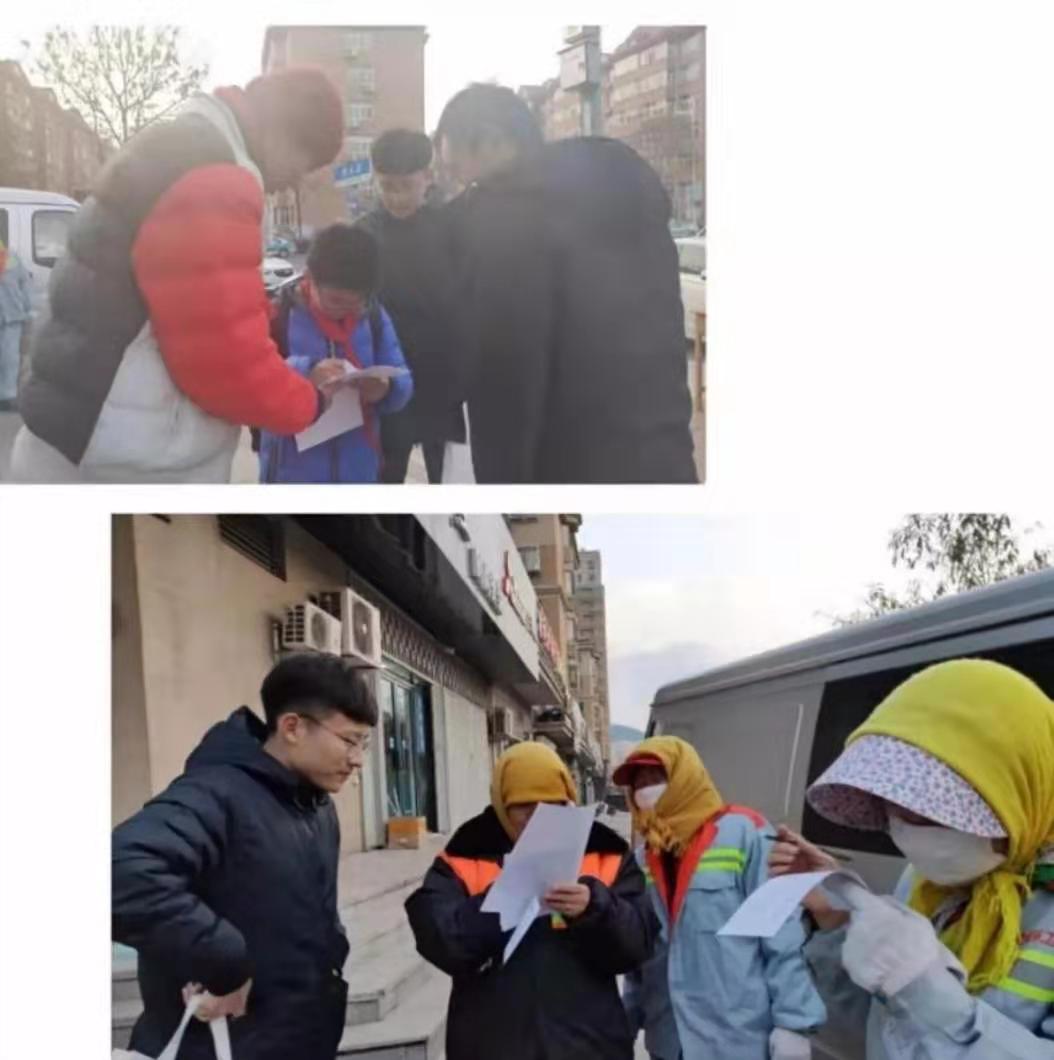 建筑学院参加此次公益活动的志愿者有:学习部兼心理部部长袁春富、学习部干事、心理部干事和文宣部干事,兵分三路,积极进行街头采访,海报宣传,收集大数据。本次反校园暴力调查采访对象是:家长、初入社会的青年、在校学生等。在采访过程中遇到了许多有趣且充满善意的人,与我们一起携手反对校园暴力。
