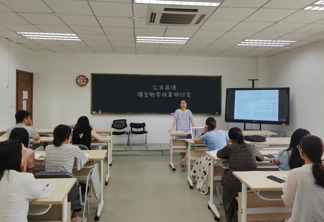 研讨会基于6月29日全体教师学习课堂改革精神,会议有线上专家教授组和线下教师组两个会场组成。公共外语教研室全体教师出席本次会议本次研讨会由公共外语教研室主任张楠老师主持。