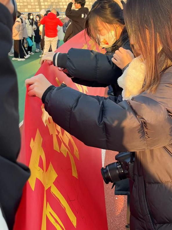 最后全体学生在“迎评促建齐努力,攻坚克难创辉煌”横幅上签上了自己的名字,烙下了铮铮誓言。