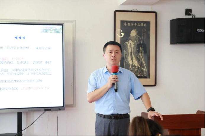 “一个国家、一个民族的强盛,总是以文化兴盛为支撑的,中华民族伟大复兴需要以中华文化发展繁荣为条件。”王立庭书记从文化自信的角度出发,向学员们解读了习近平文化思想的丰富内涵,引导全体学员要准确把握和深刻领悟这一重要思想的核心要义、精神实质、丰富内涵、实践要求,坚持学思用贯通、知信行统一,切实发挥文以化人的作用。