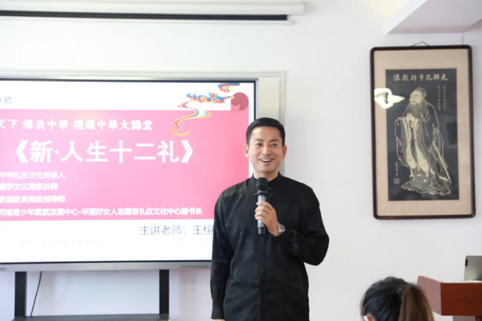 《礼记·曲礼》云:“道德仁义,非礼不成。”礼作为调整一切社会关系的根本准则,对于提高个人修养,建设和谐的人际关系和良好的社会秩序尤为重要。泱泱华夏,礼仪之邦。王栩老师以“禮”字为起点,深入浅出地为学员们阐释了礼的精髓。他引用《论语》中的“不知命,无以为君子;不知礼,无以立也”来强调,要成为一名真正的君子,就要懂得学礼、明礼,明确自己的人生目标,用行动去践行中华优秀传统文化之礼。