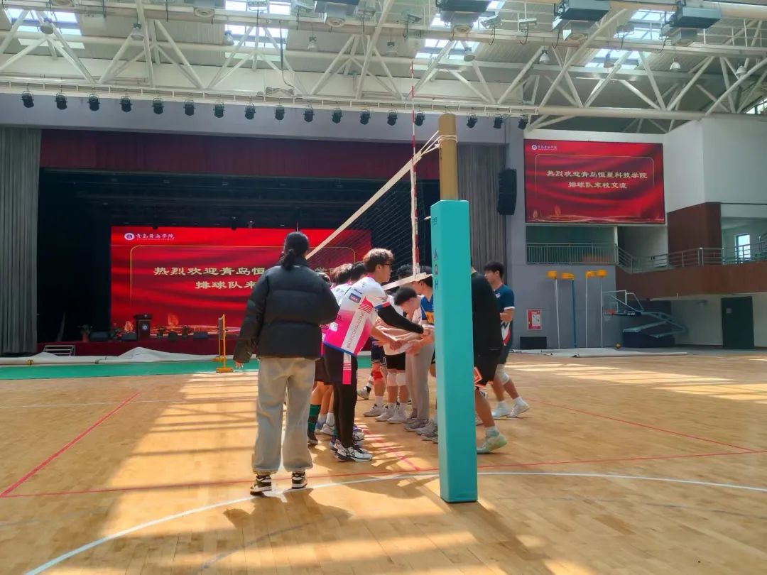 为了给两校运动员提供了一个展示球技、交流技艺的平台,增进进两校青年排球之间的交流和理解。青岛恒星科技学院体育学院直属党支部书记、执行院长杨敬松,直属党支部副书记李义成,院办主任梁程程,专任教师李雨昊一行带领青岛恒星科技学院排球队于2024年3月16日前往黄海学院进行排球交流赛。这场比赛吸引了众多观众,点燃了现场的热情,以球会友,增进了青年之间的交流。