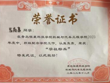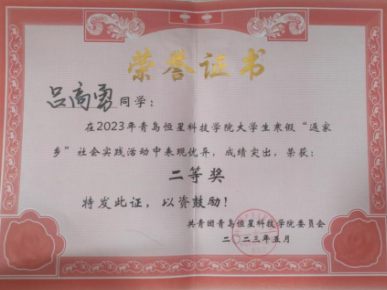 他是实践领域的“先行者”。他积极参与各类志愿服务活动,响应学校教学改革号召,参与了第一批、第二批、第三批的学社试点项目,获得了学社先进个人的荣誉称号。在“三下乡”社会实践中,他带队前往泰安市东平县党性教育基地进行为期一周的公益实践。通过为游客讲述党的革命历史故事,宣传党的二十大精神,得到党性教育基地工作人员和游客们的一致好评。