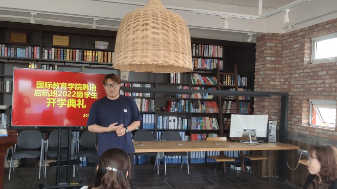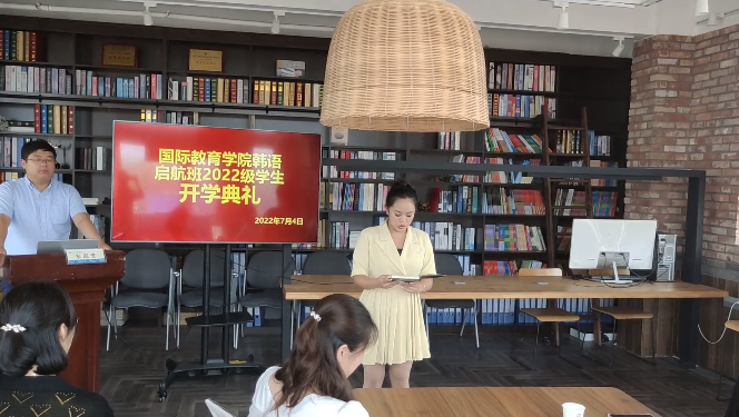 国际教育学院韩语启航班2022级学生开学典礼于2022年7月4日下午2:00在A1四楼咖啡厅举行。国际教育学院院长李汝成、执行院长李海峯、教学院长祝丽丽、留学服务中心副处长张江云、外事主任武奕、韩语项目课程主管武丽云、韩语班优秀任课老师和外教出席活动,本次开学典礼由副院长宋国贵主持。
