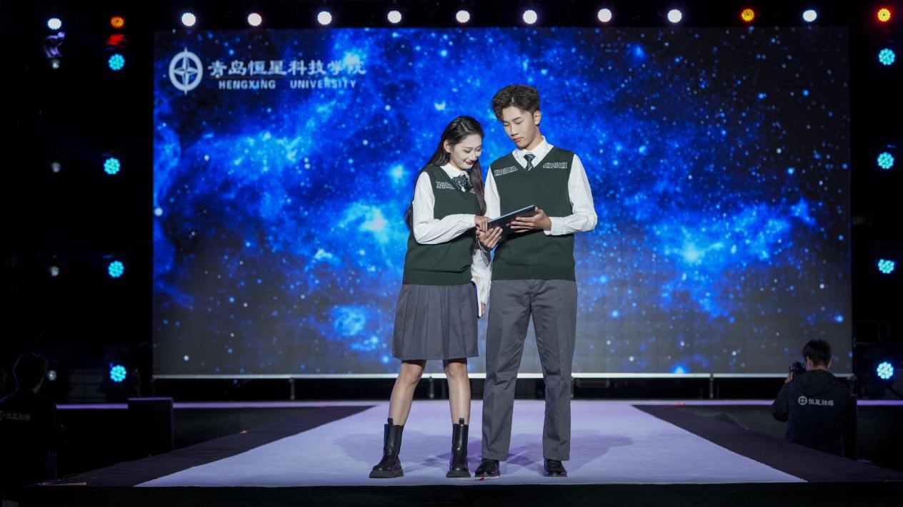 10月14日晚,我校“霓裳起舞·流彩织梦”校服走秀活动在恒星体育场精彩上演。本次活动由校团委主办,艺术与传媒学院承办,由服装与服饰设计专业师生携手多家院董企业联合打造,全体新生参加。作为“恒持真理·星耀苍穹”迎新系列活动的重要篇章,活动充分展示了学校产教融合、协同育人的育人理念。出席本次活动的领导有,恒星控股集团主席、青岛恒星科技学院董事长陈昌金,恒星控股集团副主席沈莲英,青岛恒星科技学院执行校长徐爱民,校党委副书记、副校长王立庭,恒星控股集团运营总监、青岛恒星科技学院副校长唐甜甜,各集团、各处室、二级学院院务会成员,以及老师和同学们。