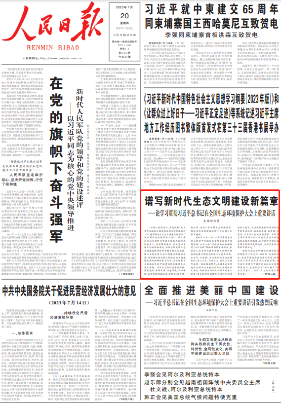 “必须以更高站位、更宽视野、更大力度来谋划和推进新征程生态环境保护工作,谱写新时代生态文明建设新篇章。”在全国生态环境保护大会上,习近平总书记从新时代坚持和发展中国特色社会主义,实现强国建设、民族复兴宏伟目标的战略高度,全面总结我国生态文明建设取得的举世瞩目的巨大成就,深入分析当前生态文明建设面临的形势,深刻阐述新征程上推进生态文明建设需要处理好的重大关系,系统部署了全面推进美丽中国建设的战略任务和重大举措。习近平总书记的重要讲话,高屋建瓴、视野宏阔、思想深邃、内涵丰富,具有很强的政治性、思想性、指导性、针对性,为进一步加强生态环境保护、推进生态文明建设提供了方向指引和根本遵循。