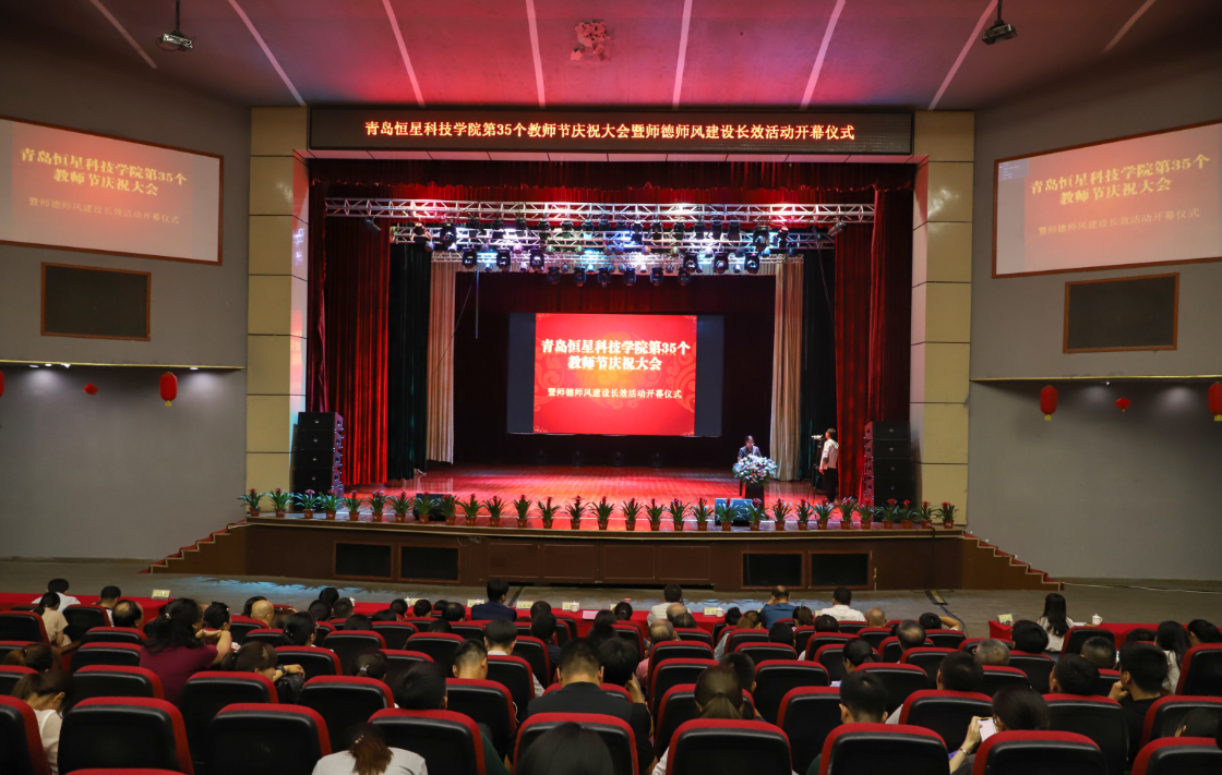 为弘扬尊师重教的良好风尚,鼓励全校教职工爱岗敬业、刻苦钻研、教书育人的积极性,增强广大教职工教书育人的荣誉感和责任感,9月10日下午,我校在国际交流中心隆重举行庆祝第35个教师节暨师德师风建设长效活动开幕仪式。董事长、校长陈昌金博士出席并讲话,全体教职工、学生代表近千人参加了大会。会议由党委常务副书记、执行校长王春娟主持。