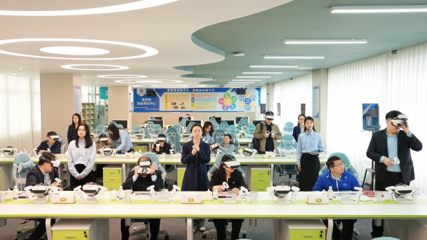 调研组深入大学生就业创业赋能中心,全面了解学校促就业概况、赋能中心建设规划、阶段性成果及未来发展举措,深度体验了数字人展示、就业成果展区、元宇宙VR测评、元宇宙招聘会、创业岛实训、圆通岗位标准演示等特色功能模块,对中心创新的数字化就业服务模式给予高度评价。