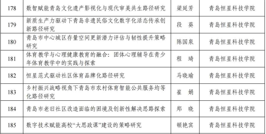近日,青岛市委宣传部公布了“2025年度青岛市哲学社会科学规划研究项目”立项名单。经过专家评审、社会公示,并经市委宣传部部务会研究通过,全市共立项226项。其中,我校立项11项,充分彰显了学校在哲学社会科学领域的卓越科研实力与学术影响力。