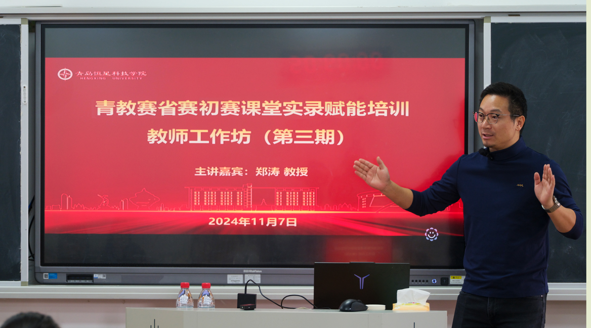 11月7日,我校教师教学能力提升系列工作坊第三期在A3-614智慧教室成功举办,本次工作坊旨在进一步提升我校教师的教学水平和创新能力,并为参加山东省第十二届高校青年教师教学比赛及第五届教师教学创新比赛赋能。本次工作坊由学校人事处主办、教务处协办,特别邀请了青岛农业大学郑涛教授作为主讲嘉宾,为即将参加省赛的教师们赋能培训。