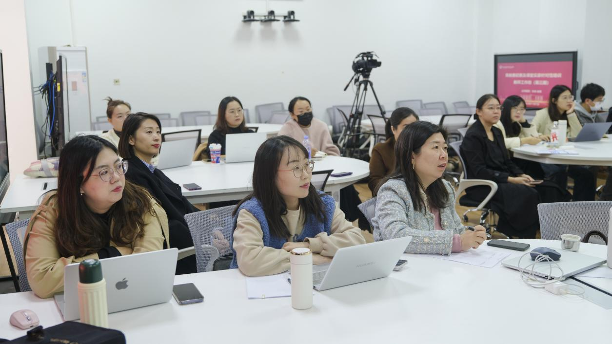 在工作坊中,教师们积极参与、认真聆听,并踊跃向郑教授请教。他们纷纷表示,通过此次辅导,自己对比赛有了更清晰的认识,对参赛课程的设计和教学方法的运用也有了新的灵感和思路。