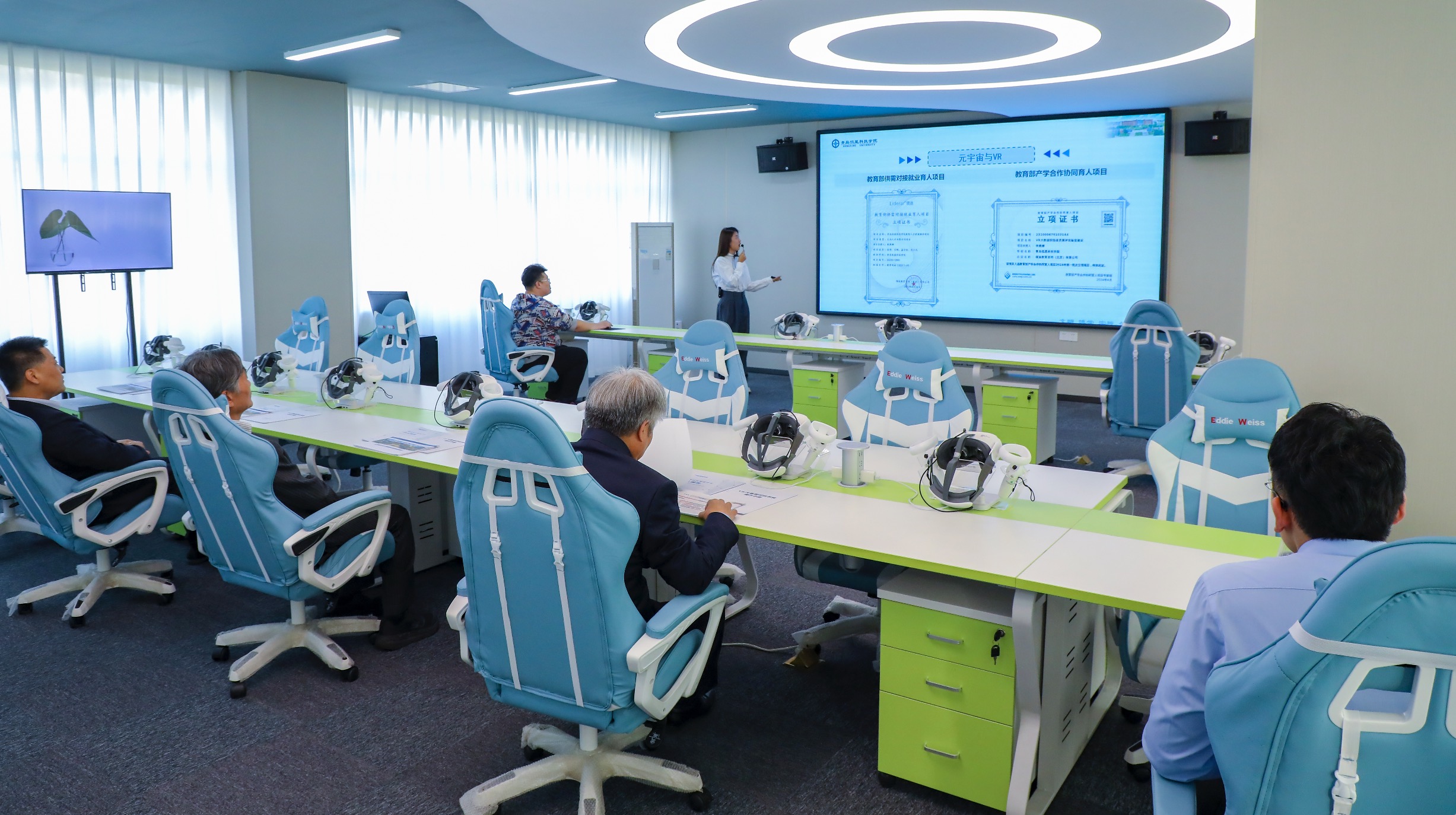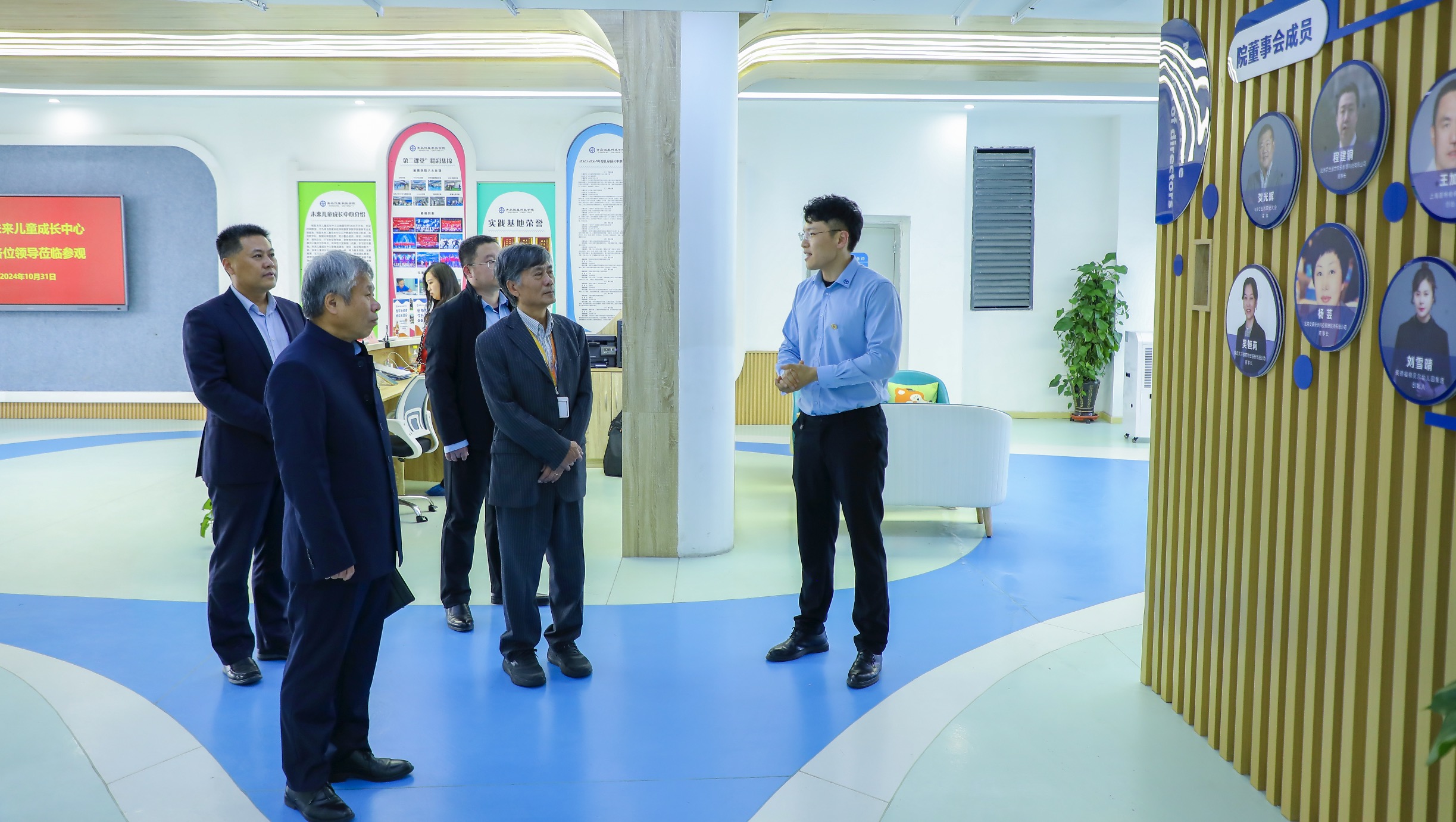 在建筑工程学院院长陈立文、执行院长姜兆飞的引领下,刘焕明院士一行首先参观了我校融媒体中心,深入了解了我校注重理论实践相结合的授课新模式。步入机器人实验中心,映入眼帘的便是高科技机器人灵活作业的场景,见证了技术的力量。随后,一行人前往儿童成长中心,深切体会到寓教于乐、全面发展的教育理念在实践中的生动展现。在创新创业中心,学生创新思维与创业激情碰撞出的火花在这里展现的淋漓尽致,见证了创意项目从萌芽到成长每一步的精彩过程。最后一站,来到恒星元宇宙VR大数据测评中心,刘焕明院士一行亲身体验了VR技术,感受了虚拟与现实交融的奇妙世界,以及大数据在测评领域的广泛运用。
