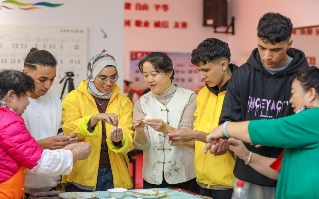活动室内,冬意被洋溢的热情驱散。面粉如细雪般飞舞,留学生们在老师的指点下,擀皮、填馅、捏合,将陌生的技艺化为指尖的舞蹈。形态各异的饺子,承载着不同文化的想象力,被齐齐码放,宛如一件件凝结了欢笑的艺术品。