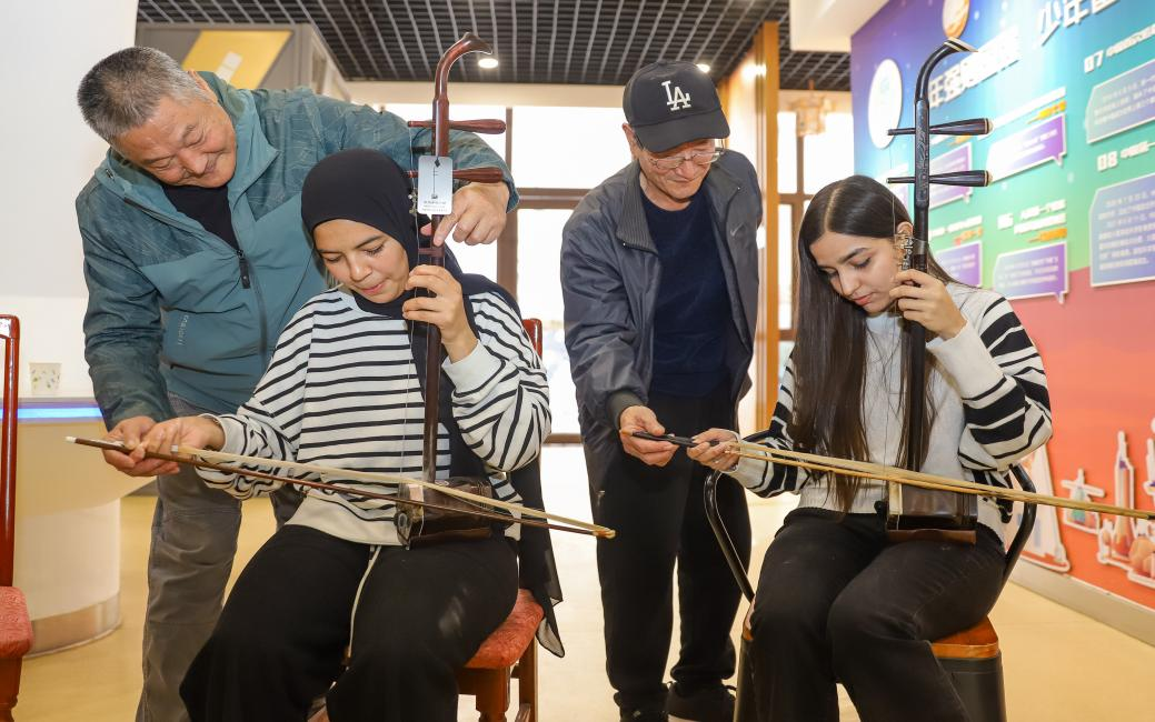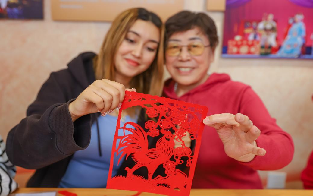 剪纸区域,红纸在巧手翻飞中被赋予生命,幻化作雪花与窗花;一旁,二胡的悠扬弦音与鼓声的奔放节拍不期而遇,奏响了一曲曲冬日序曲。每一种体验,都是一次无声的对话,让文明的交流在指尖与耳畔生动流淌。