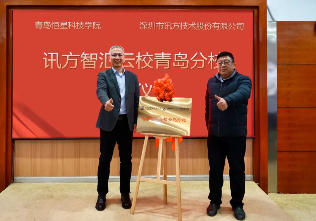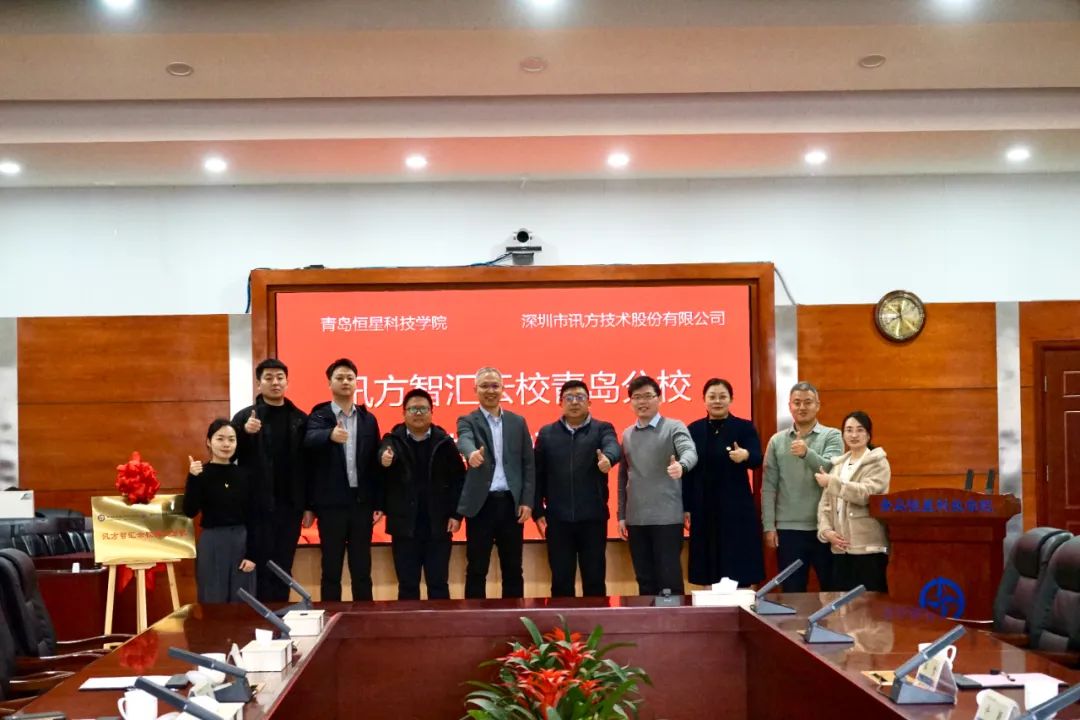 12月12日,由我校联合深圳市讯方技术股份有限公司打造的讯方·智汇云校青岛分校正式揭牌。出席本次揭牌仪式的领导有讯方技术总裁刘国锋、北部片区总经理杜红奎、山东区域(含天津)区域总监王言、山东区域HALP经理刘浩、青岛恒星科技学院副校长韩伟、青岛恒星运营中心经理张靖、数智集团执行总裁朱成波、信息工程学院执行院长许颖、数智集团网络事业部部长陈战涛、青岛恒星软创科技有限公司总经理邹雪。