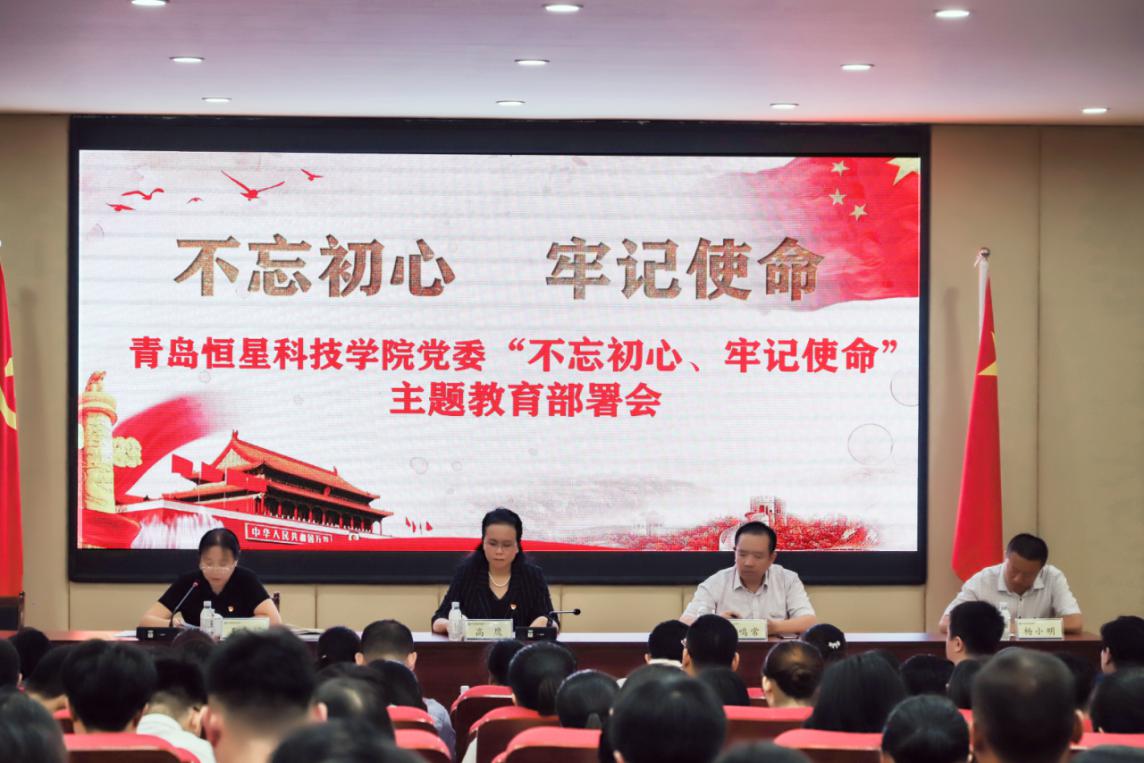 9月21日上午,青岛恒星科技学院召开“不忘初心 牢记使命”主题教育部署动员会议。青岛市教育局一级调研员、主题教育高校指导组组长高鹰同志出席会议并讲话,青岛市教育局机关党委二级调研员、主题教育高校指导组副组长秦鸣常同志、山东省教育厅督导专员兼党建联络员杨小明同志、青岛恒星科技学院党委副书记、执行校长王春娟同志、全体党员同志三百余人出席会议。