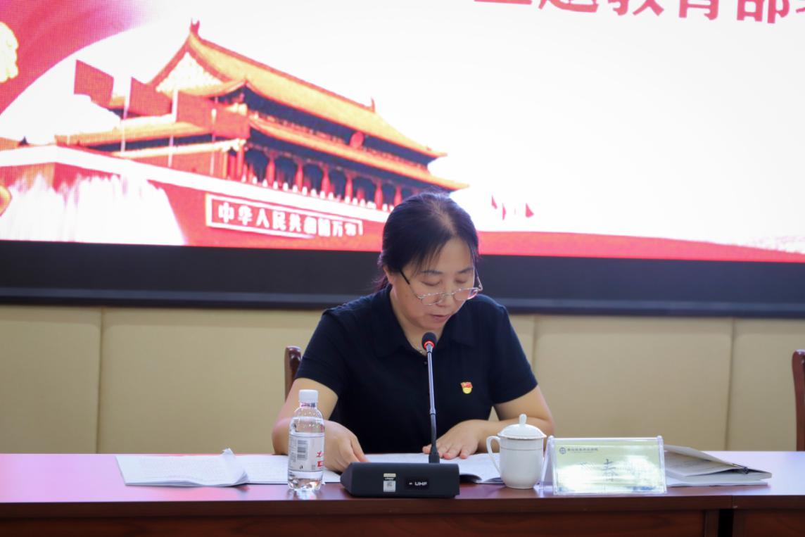 会上王春娟副书记结合学校实际,对我校主题教育进行了深入动员。她强调,党中央对这次主题教育的根本任务、总要求、具体目标、方法步骤都作出了明确规定,我们要准确把握中央精神,坚持主题不变、标准不降、力度不减,结合我校教育实际,高标准严要求推进第二批主题教育,确保主题教育取得预期效果。开展“不忘初心、牢记使命”主题教育,责任重大、使命光荣。号召全校党员干部紧密团结在以习近平同志为核心的党中央周围,增强“四个意识”,坚定“四个自信”,做到“两个维护”,发挥好党委政治核心作用、支部战斗堡垒作用、党员的模范先锋作用,以认真的态度、务实的举措、过硬的作风,为学校的发展营造风清气正的工作氛围,以优异的成绩向新中国成立70周年献礼!