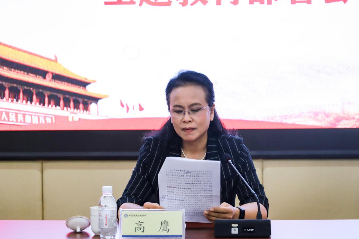 高鹰为我校开展主题教育做了全面的指导并提出几点要求:一是提高政治站位,牢固树立四个意识,坚定四个自信,做到两个维护;二是把握政治方向,认真学习领会工作要求,上级明确规定的动作,要一丝不苟做到位,准确把握工作要求;三是严格质量标准,第二批主题教育要突出做好学校领导班子领导干部,学习教育要入脑入心,引导领导干部认真研究理论、研究政策、研究典型,防止以业务研究代替理论学习;四是要立戒形式主义,强调“要坚决反对形式主义、官僚主义”,我们要紧盯学校存在的形式主义、官僚主义问题,抓好整改;五是坚持领导示范,认真履行主体职责;六是抓好统筹兼顾,找出工作差距,明确努力方向。