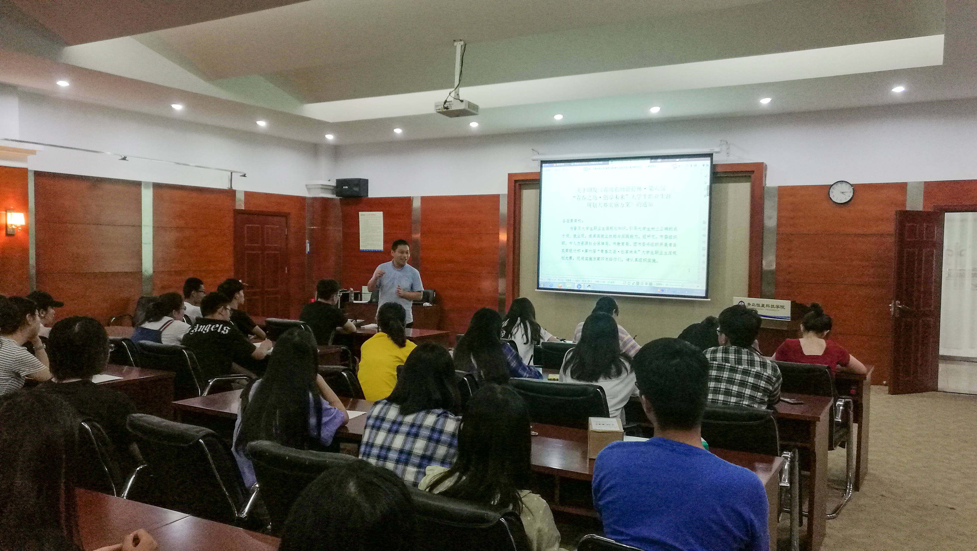 贾健首先介绍了我校就业处,鼓励同学们自主咨询、主动培养自身职业发展和适应社会的能力。在强调提前了解就业信息、培养职业意识的重要性时,他说:“成功的人生需要正确的规划,你今天站在哪里并不重要,但是你下一步迈向哪里却很重要!”简洁而有力的警句结合详细事例提示同学们应提前训练职业技能,为应对各种就业问题早作打算。随后,贾健从职业规划大赛的目的、性质和含义切入帮助同学们对职业规划有更深入的认识,并通过介绍科学、系统的职涯规划法引导同学们进行自我探索、工作世界探索以及如何决策、如何进行合理的求职行动以促进自身的成长与发展。