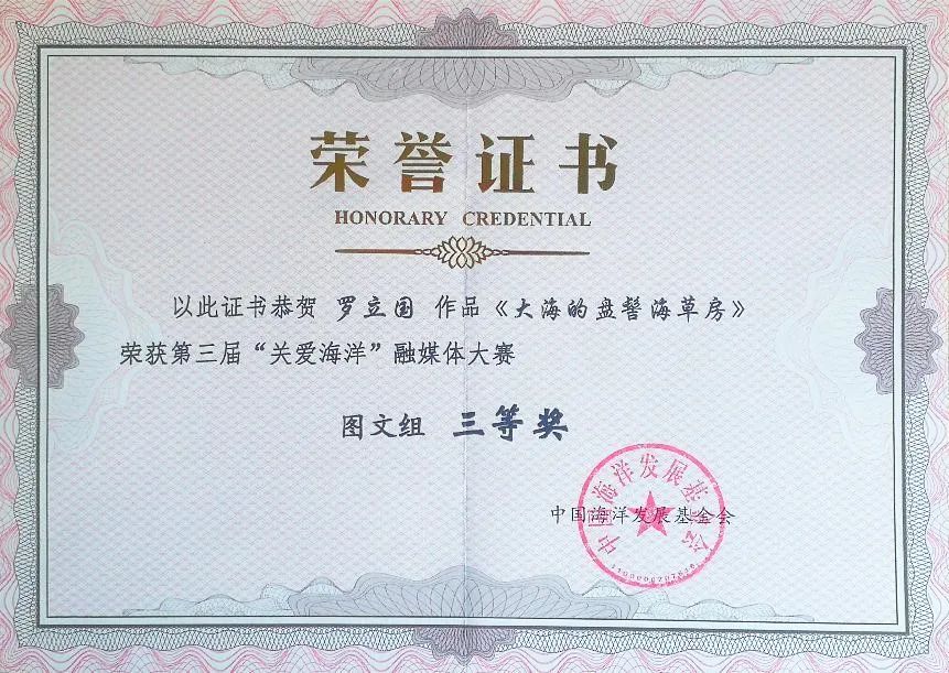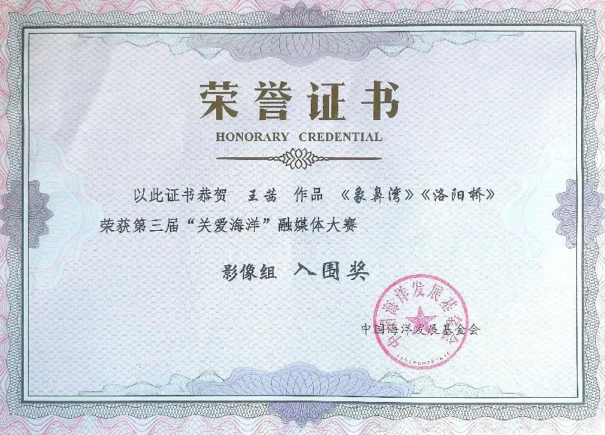 由中国海洋发展基金会、中国太平洋学会、中国海洋出版社、中国外文局亚太传播中心、中国自然资源部摄影家协会联合主办的2023第三届“关爱海洋”融媒体大赛终评工作在北京结束。来自全国24个省(自治区、直辖市)高校师生创作的反映我国海洋强国建设成绩,诠释对海洋之美理解和热爱的5000多件作品,经过初评,终评,最终评选出影像组一等奖1名、二等奖3名、三等奖5名,图文融合组一等奖1名、二等奖2名、三等奖3名,共计15件。另有100件作品获入围奖。青岛恒星科技学院艺术与传媒学院罗立国教授的《大海的盘髻海草房》获图文融合组三等奖并被《海洋世界》杂志作为典藏作品收录,2020级影视摄影与制作本科1班王茜同学的《象鼻湾》、《洛阳桥》2幅作品获入围奖。