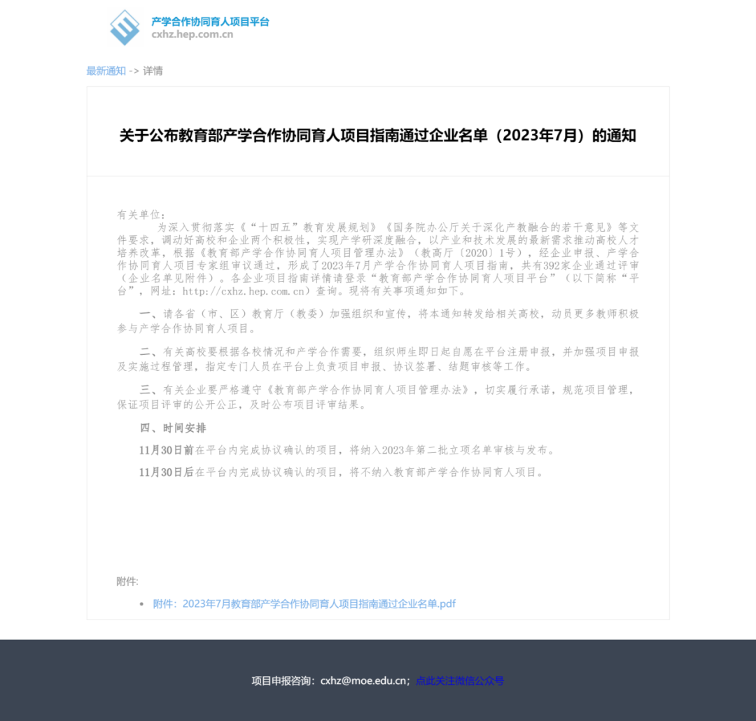 近日,教育部产学合作协同育人项目专家组发布《关于公布教育部产学合作协同育人项目指南通过企业名单(2023年7月)的通知》,青岛恒星集团有限公司基础教育集团16个项目获批。