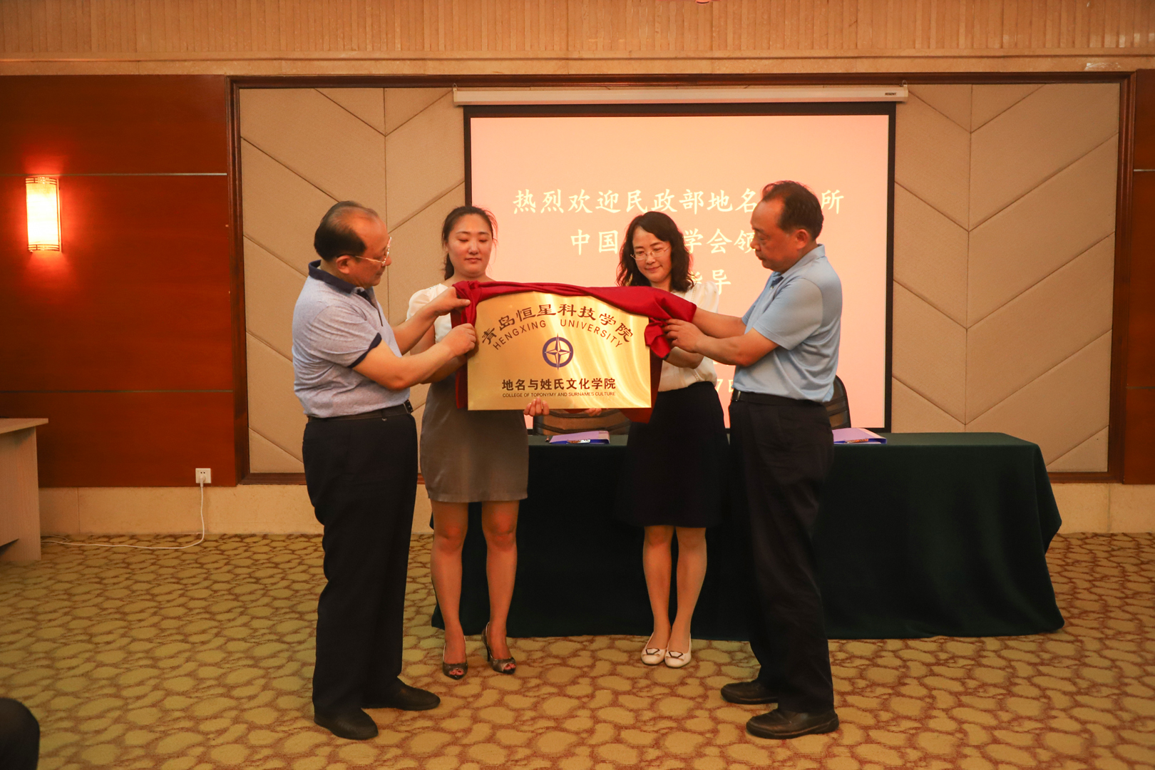 2019年7月26日至27日,中国民政部地名研究所所长、中国地名学会会长王胜三、中国地名学会秘书长王殿彬等一行莅临青岛恒星科技学院,就共同搭建地名和姓氏文化研究平台做了深入讨论和研究。27日上午,民政部地名研究所、中国地名学会与青岛恒星科技学院正式签订合作协议,双方将围绕中国地名与姓氏文化博物馆、中华家庭文明与地名姓氏文化博览会、中国地名与姓氏文化公园等具体项目进行深入合作,双方就设立民政部地名研究所青岛恒星科研基地、中国地名学会青岛恒星教育培训基地、青岛恒星科技学院地名与姓氏文化学院、中国地名与姓氏文化研究院等达成了一致意见,并举行了揭牌仪式。