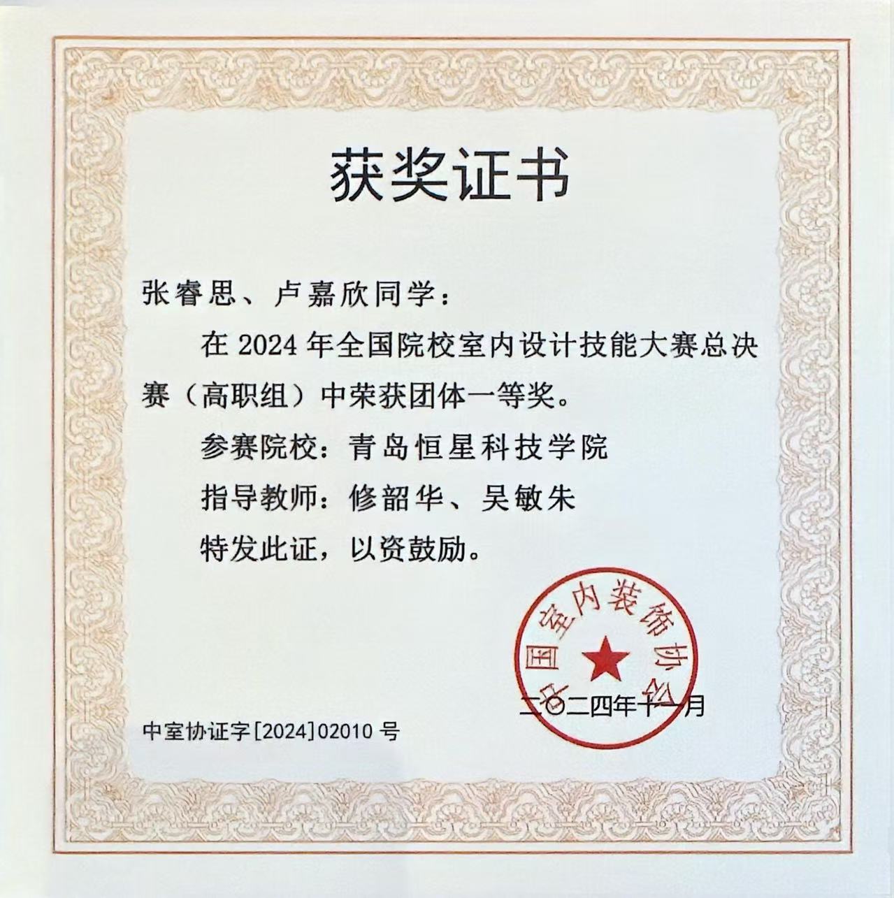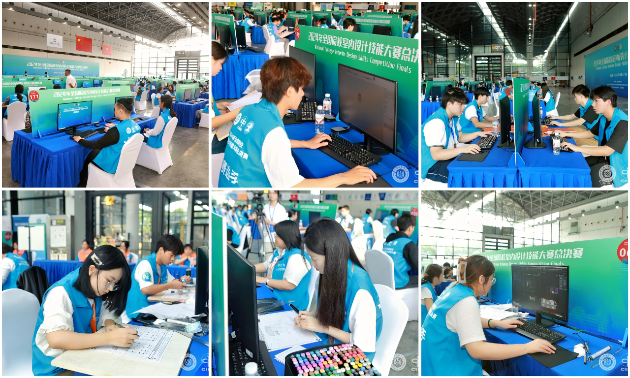 近日,由中国室内装饰协会主办、教育部职业院校艺术设计类专业教学指导委员会环境艺术设计类专业委员会联合主办、南宁职业技术大学和广西艺术学院承办的“2024年全国院校室内设计技能大赛”总决赛在南宁国际会展中心举行。历经层层选拔和激烈角逐,来自国内外的171支参赛队入围总决赛争夺最终奖项。其中,由建筑工程学院修韶华老师和吴敏朱老师带队指导的两名同学张睿思、卢嘉欣入围总决赛,并以出色的表现荣获高职组一等奖。