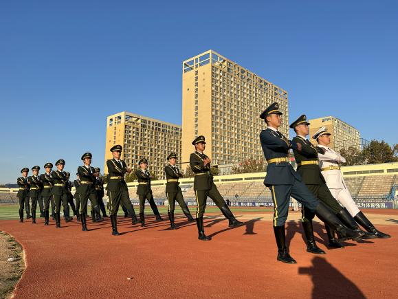 体能训练同样是备赛的关键环节,是对队员们体力和毅力的双重考验。长跑训练时,他们在校园内挥洒汗水,挑战自己的耐力极限;手臂定型训练中,他们咬牙坚持,不断增强肌肉记忆。即便身体疲惫不堪,却没有一人轻言放弃。因为他们明白,只有拥有强健的体魄,才能在赛场上展现出我校国旗护卫队的风采。