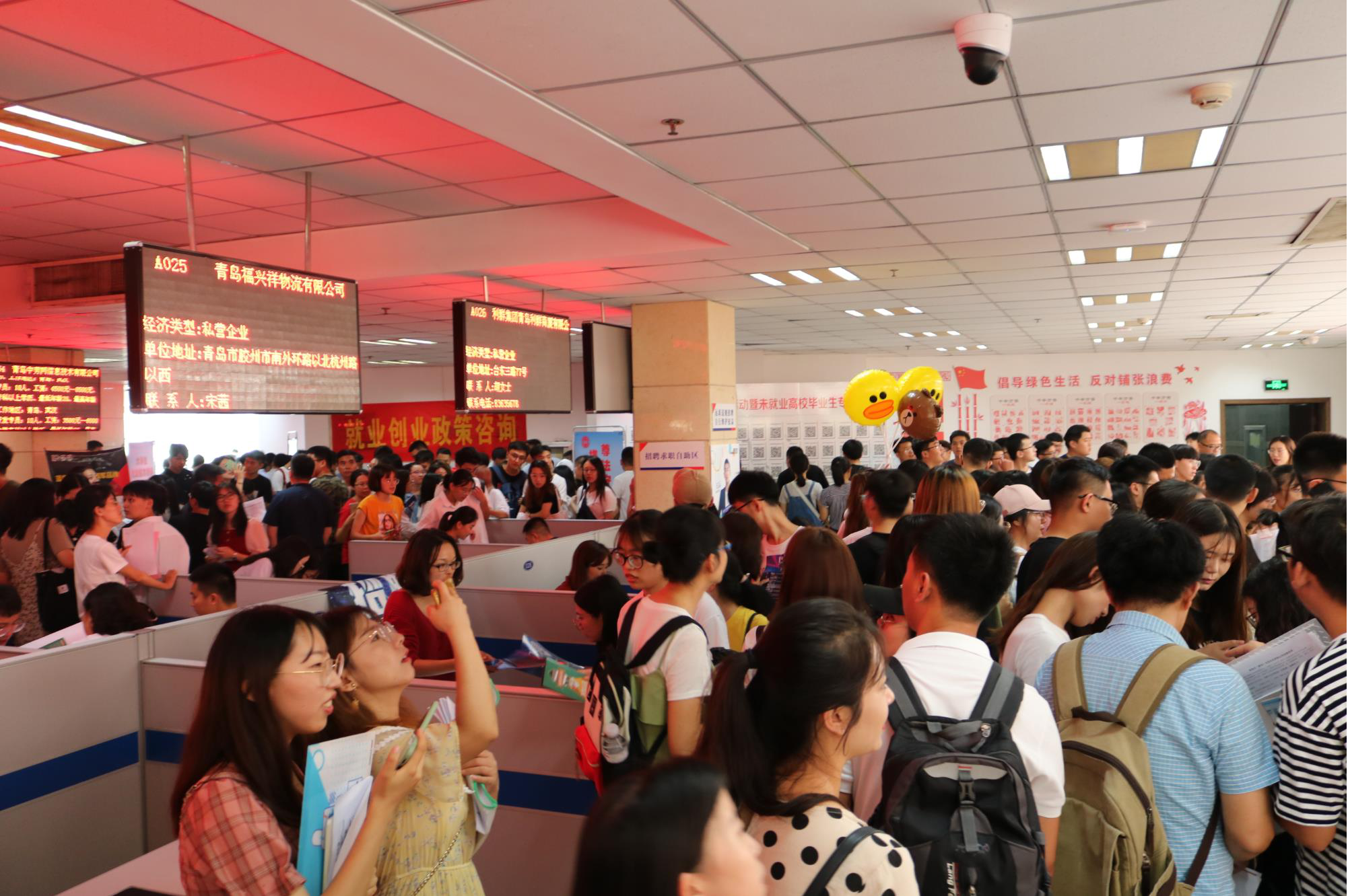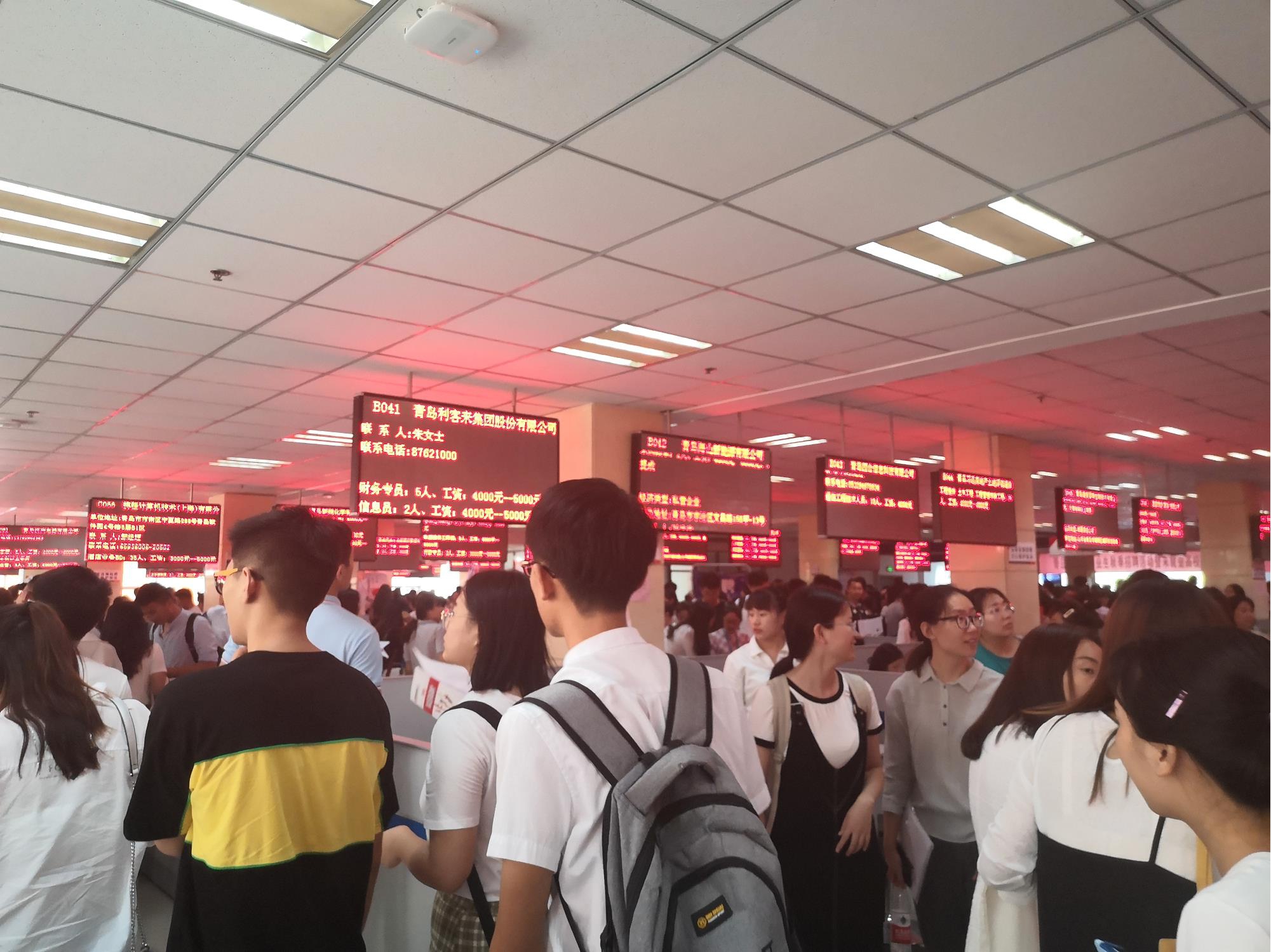 市人力资源社会保障局在青岛市就业服务中心举办高校毕业生秋季招聘活动暨未就业高校毕业生专场招聘会。现场120家规模以上、国有企业及民营企业参加招聘,其中制造业企业29家,占23.6%,如酷特智能,特锐德电器等;服务业企业 83家,占69.9%,如利群,新华锦等;建筑业企业8家,占 6.5%,如青建集团,烟建集团等。提供岗位1.3万余个,涉及工程师、会计、金融、文员、设计师等职位。现场特别设立“二维码”墙,供求职者扫描,方便快捷了解岗位信息。市人社局设立政策咨询区,为求职者解疑答惑。
