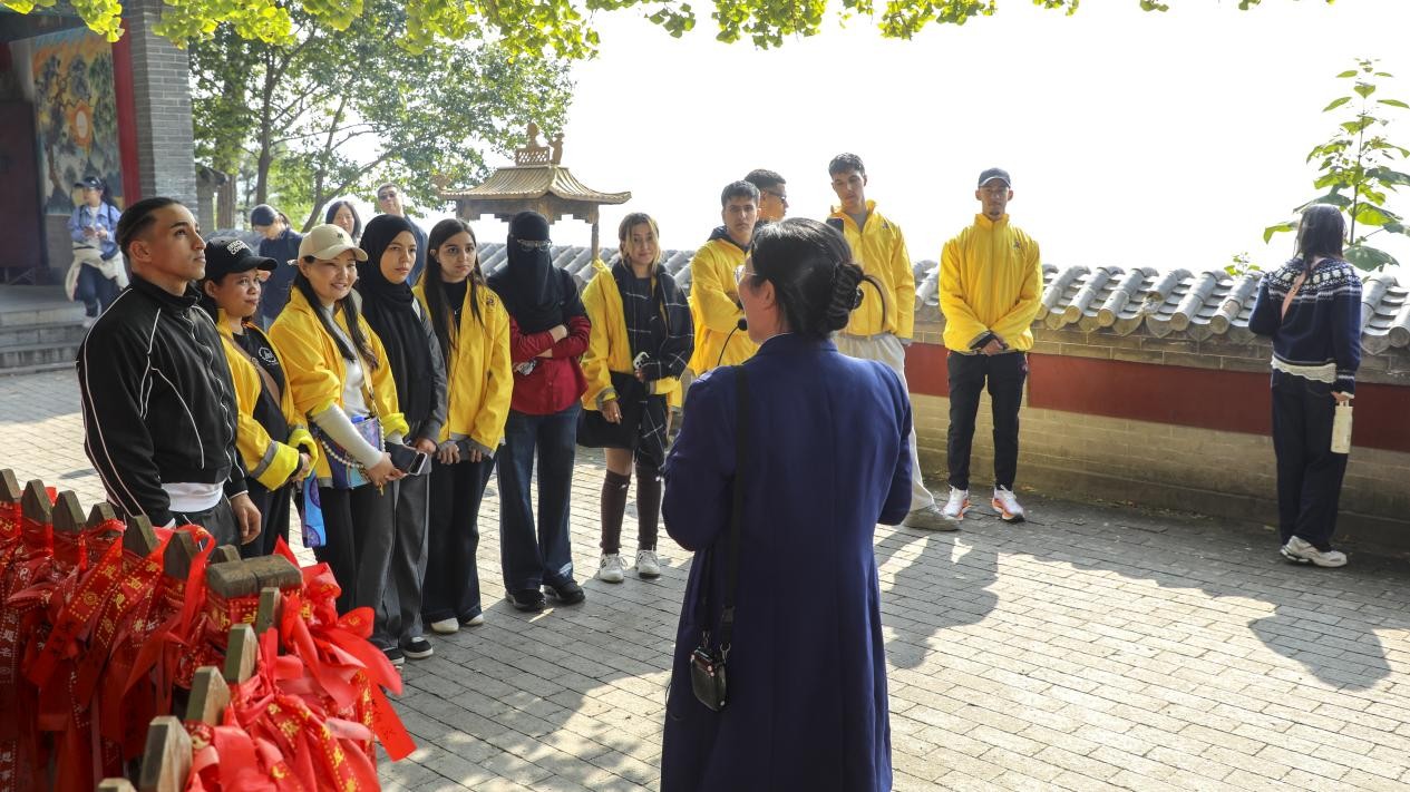 随后,全体参与者进入竹子庵参与祈福。大家在祈福牌上写下心愿,悬挂于庵内的千年银杏树上。祈福活动不仅寄托了大家对美好生活的向往,也加深了学生们对中国传统文化的理解和认同。