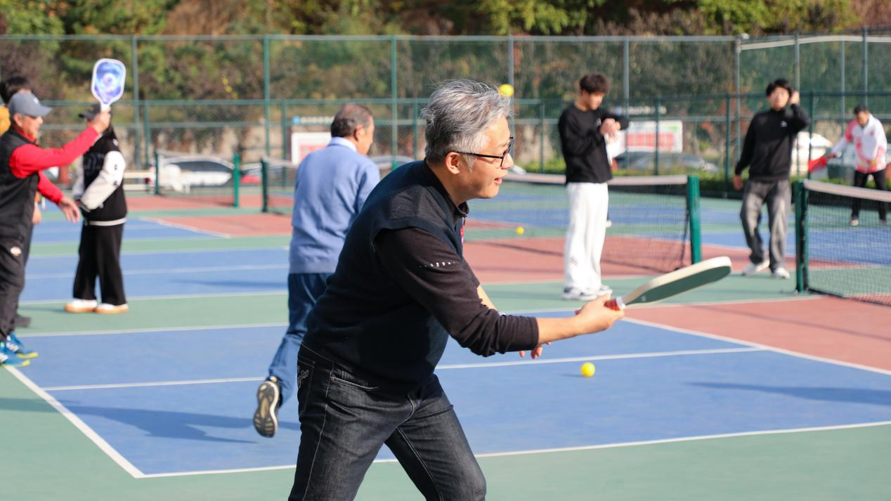 陈昌金董事长为比赛发球,匹克球趣味竞赛正式拉开帷幕,7分制双打迷你赛中,老教师与青年教师自由组合,默契配合;“精准发球”挑战赛里,大家瞄准目标挥拍,每一次成功得分都引来阵阵喝彩。赛场上,不分年龄辈分,只有运动的快乐与彼此的鼓励。