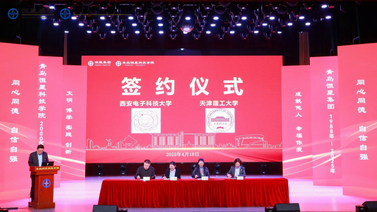 4月18日,西安电子科技大学青岛计算技术研究院常务副院长向麟海出席我校25周年校庆暨集团37周年庆典大会。在国际交流中心举行的签约仪式上,双方代表共同签署《西安电子科技大学青岛计算机技术研究院与青岛恒星科技学院战略合作协议》。