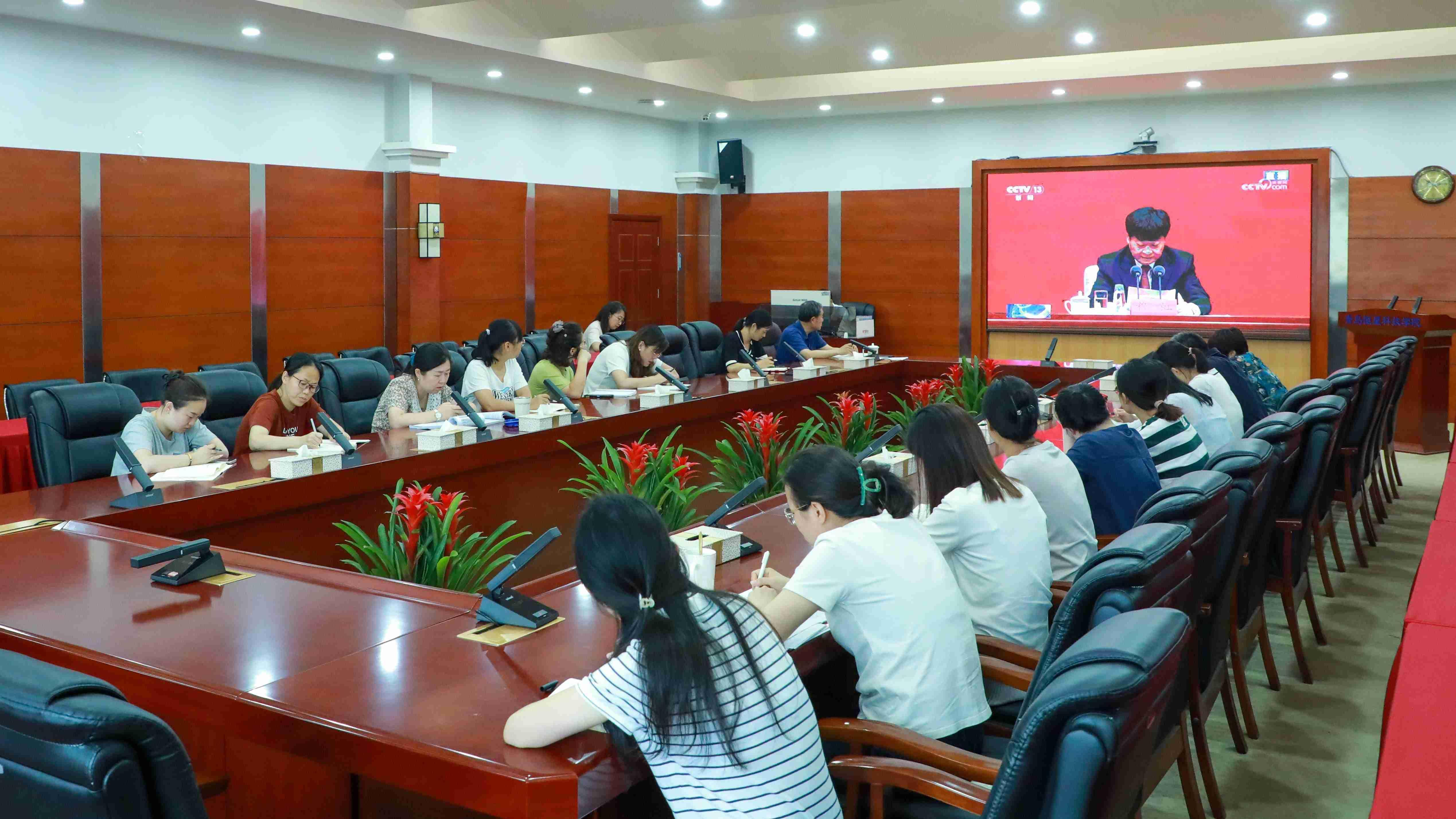 7月19日上午,学校召开党的二十届三中全会精神学习会,观看了中央召开的介绍和解读党的二十届三中全会精神视频会。机关党总支全体党员、马克思主义学院直属党支部、党委职能部门全体党员、各处室副处级以上干部参加会议。学校党委书记刘龙海出席会议并讲话,强调要深入学习领会党的二十届三中全会精神,深刻领悟“两个确立”的决定性意义、坚决做到“两个维护”,全力以赴推动兴起学习宣传贯彻三中全会精神的热潮。